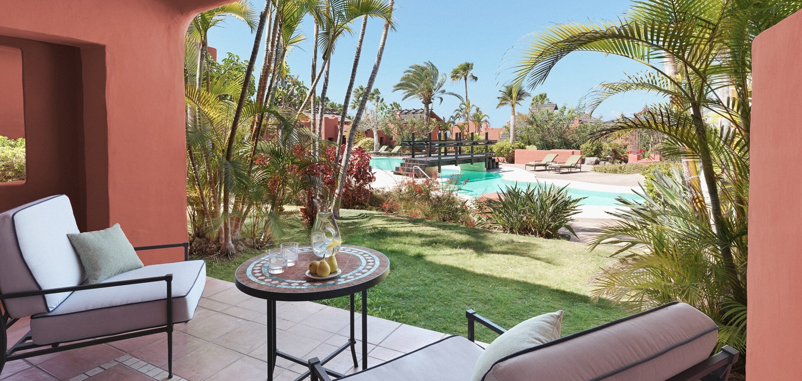 Retreat Adults Only 01 Bedroom Suites + Private Pool (80 m²) avec chambre à coucher et living séparé et terrasse avec piscine privée et vue jardin