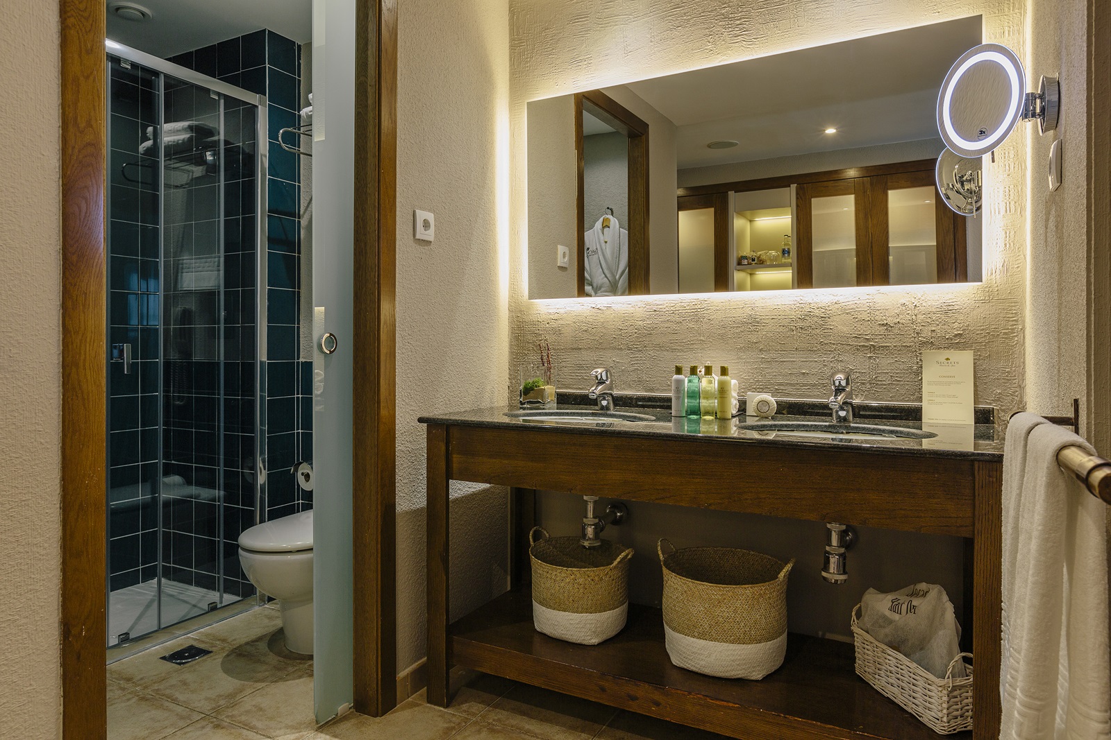 toutes les chambres et suites disposent d'une bain et/ou douche, sortie de bain, pantoufles, TV-satellite, téléphone, tablet, coin salon, minibar (€), percolateur à café et à thé, coffre-fort, climatisation, terrasse ou balcon