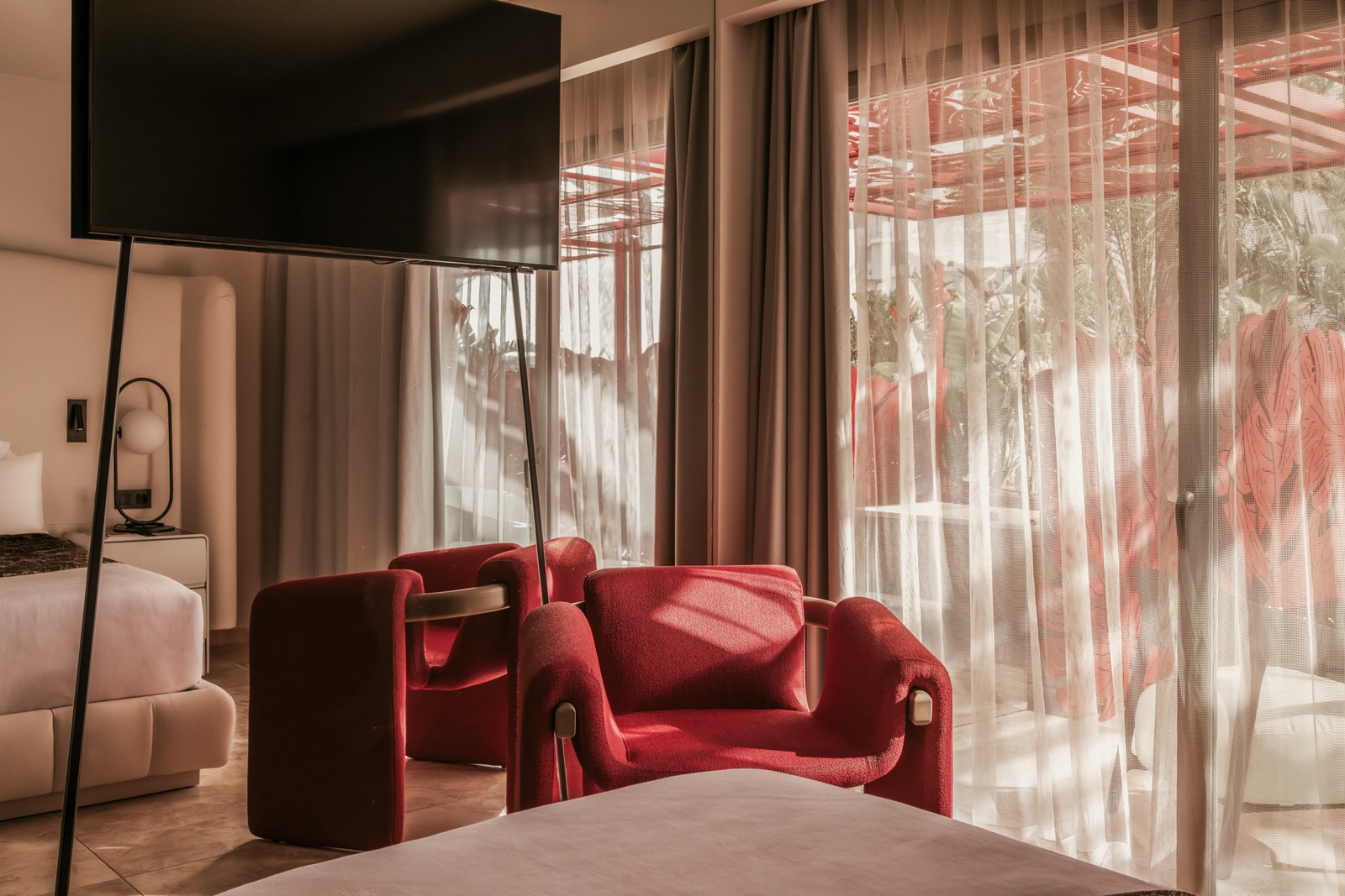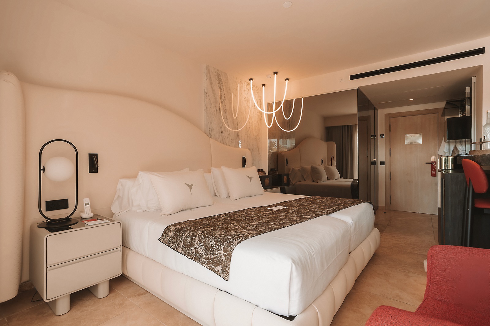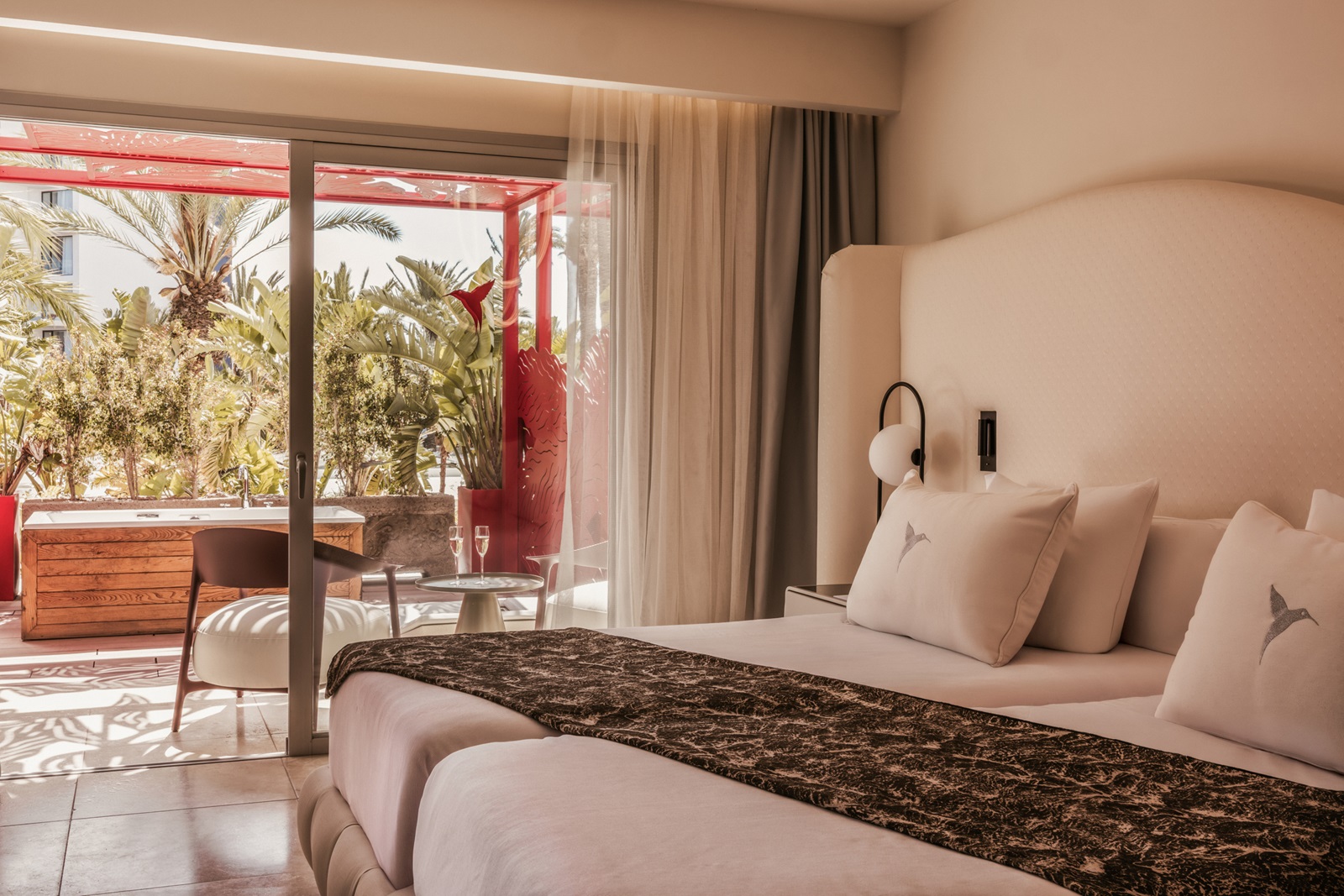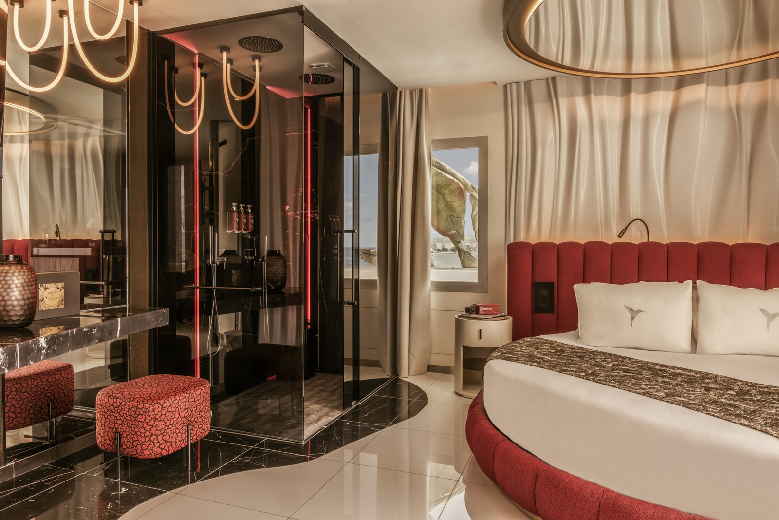 chambres Fashion Victim (42 m²) avec lit rond et douche ouverte dans la chambre, appareil Nespresso® et balcon avec jacuzzi et vue mer
