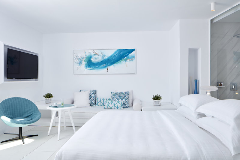 Les couples à l'âme romantique seront véritablement charmés par cet hôtel boutique appartenant aux prestigieux Relais & Châteaux. Vous séjournerez dans un décor apaisant, à proximité de l'agréable et animée ville de Mykonos et de la plage attrayante de Plati Yialos. Vous y profiterez du plus haut niveau de confort. Le bleu de la mer Égée et la couleur crème du superbe aménagement veillent à des contrastes féériques. L'intime Spa Thalasso vous réjouira également au plus haut point. Ajoutez-y le service extrêmement personnel dans la droite ligne de l'hospitalité ensoleillée de l'île, et vos vacances ne pourront qu'être réussies!