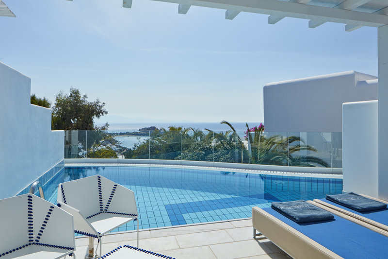 2E, 3E (45 m²): suites 'Thalassa' avec séjour avec divan-lit, piscine privée et vue mer (sans bain bouillonnant)
