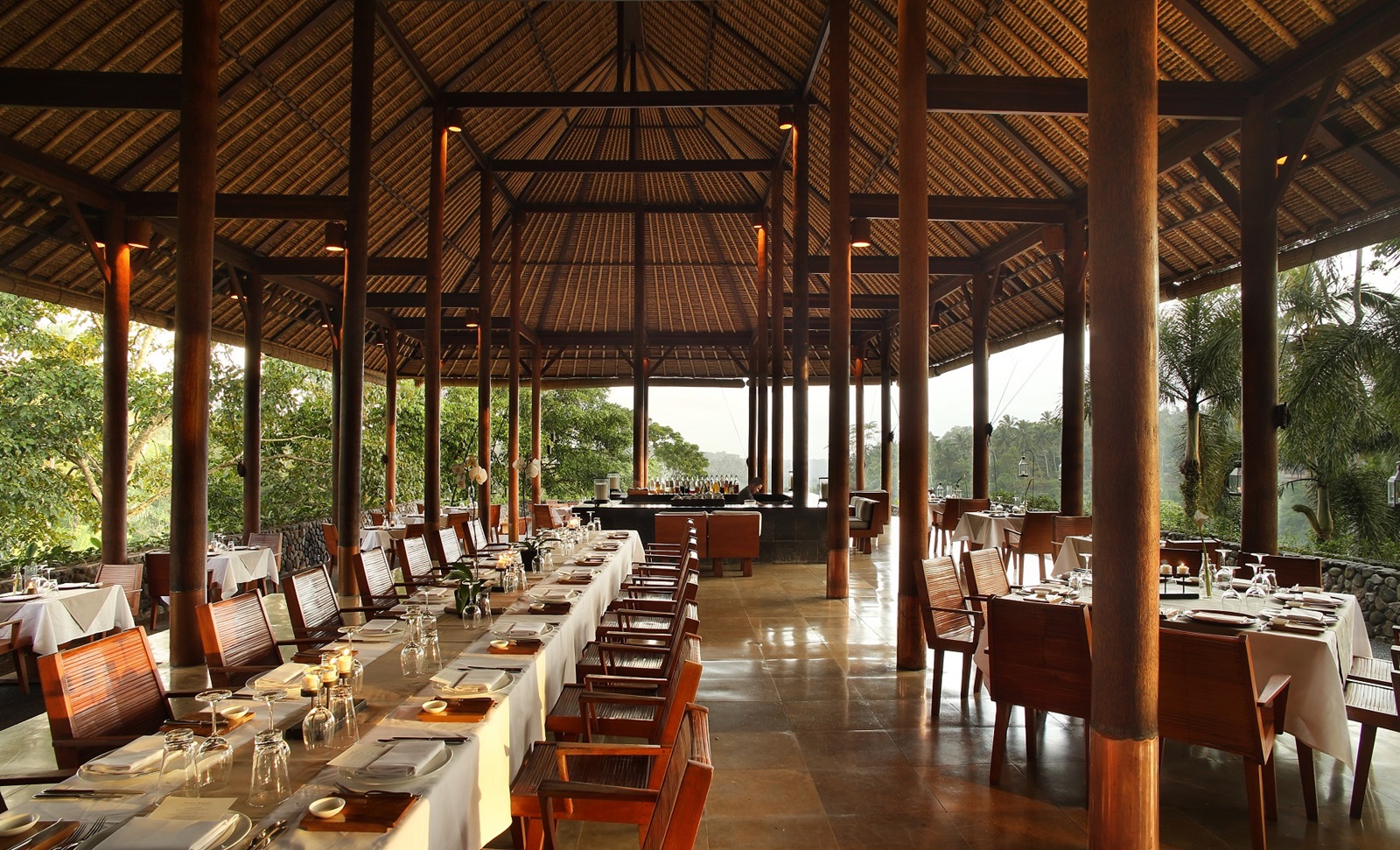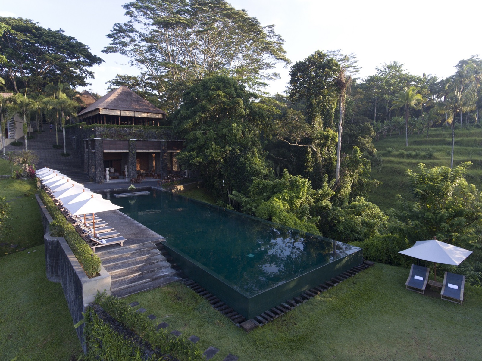 Cet hôtel se trouve à 15 minutes d'Ubud, qui est le centre de l'art et de la culture balinaise depuis plus d'un siècle. Il est conçu comme un village perché balinais moderne, avec une vue imprenable sur la mythique rivière Ayung. Les chambres et les villas surplombent la vallée et interagissent magnifiquement avec l'environnement tropical. De plus, la piscine à débordement vert émeraude est l'une des plus romantiques de Bali. Selon Travel & Leisure Magazine, elle fait même partie des 50 plus belles du monde.