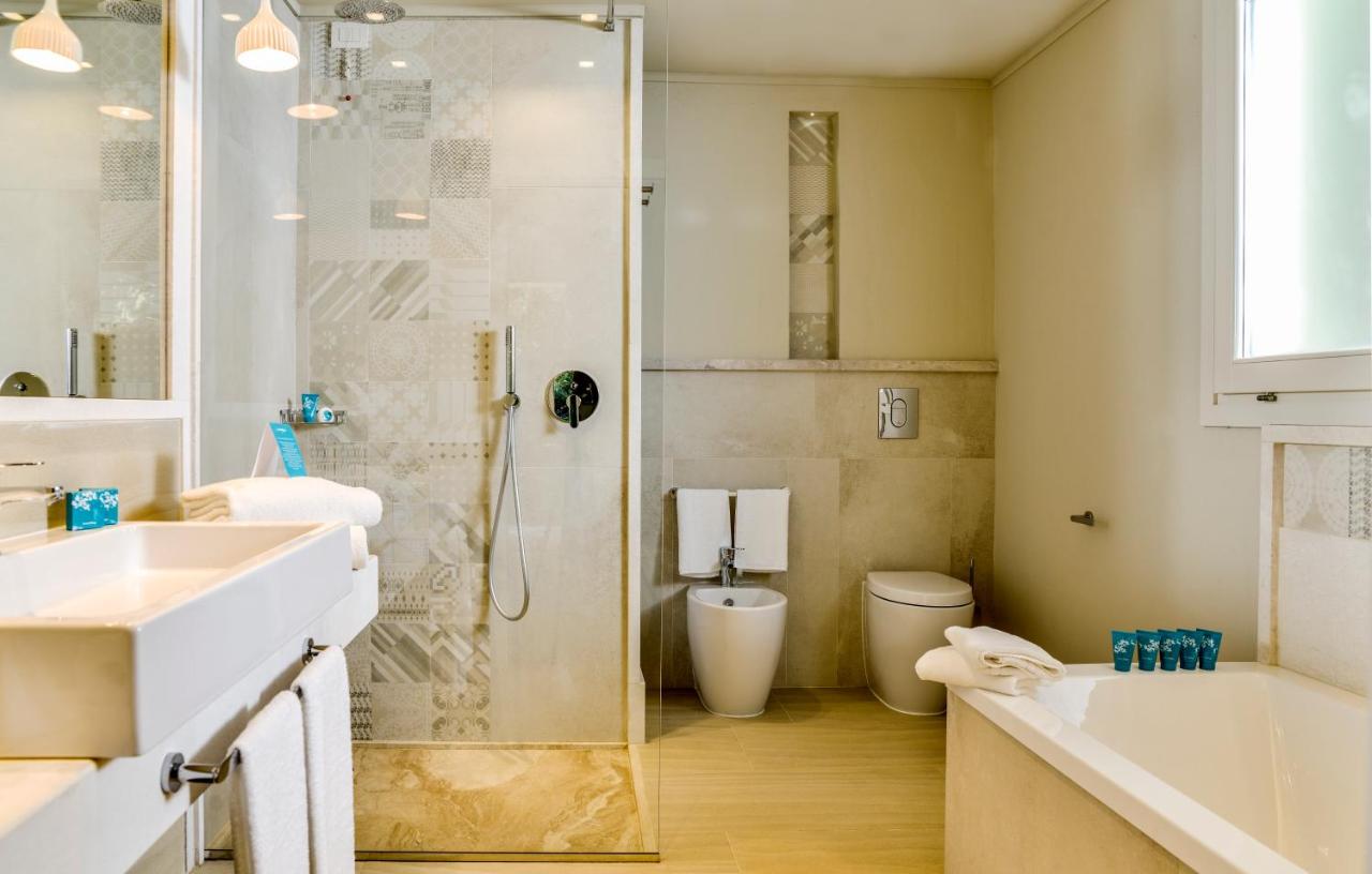 toutes les chambres et suites sont réparties sur le magnifique domaine dans des bungalows ou des hôtels : ‘Bouganville’ 4* et ‘Le Palme’ 4* (idéal pour les familles, bungalows avec terrasse privée) ; ‘Il Borgo’ 4* (bungalows spacieux pour les familles avec enfants), ‘Pineta’ 5* (bâtiment hôtelier dans un beau jardin avec des chambres avec balcon ou terrasse), ‘Castello’ 5* (bâtiment hôtelier près de la plage, chambres avec balcon ou terrasse), ‘Castello Garden’ 5* (bungalows familiaux de luxe dans le jardin à côté de ‘Castello’), ‘Le Dune’ 5*L (bungalows exclusifs avec jardin privé, près de la plage) et l'exclusive et intime ‘Villa del Parco’ 5*L (avec chambres et bungalows avec accès direct au ‘Acquaforte Thalasso & Spa’).