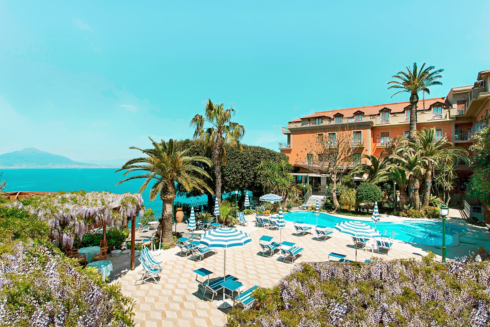 Le Grand Hotel Ambasciatori est l'un des meilleurs hôtels de Sorrente. Il bénéficie d'un emplacement unique sur une falaise offrant une vue imprenable sur la baie de Sorrente. Cet hôtel de charme de 82 chambres seulement se caractérise par l'excellence de son service, son hospitalité et l'attention portée aux détails dans un cadre extrêmement élégant et classique. Rénové l'année dernière, c'est l'adresse idéale si vous recherchez la paix et l'intimité dans un endroit très central et unique.