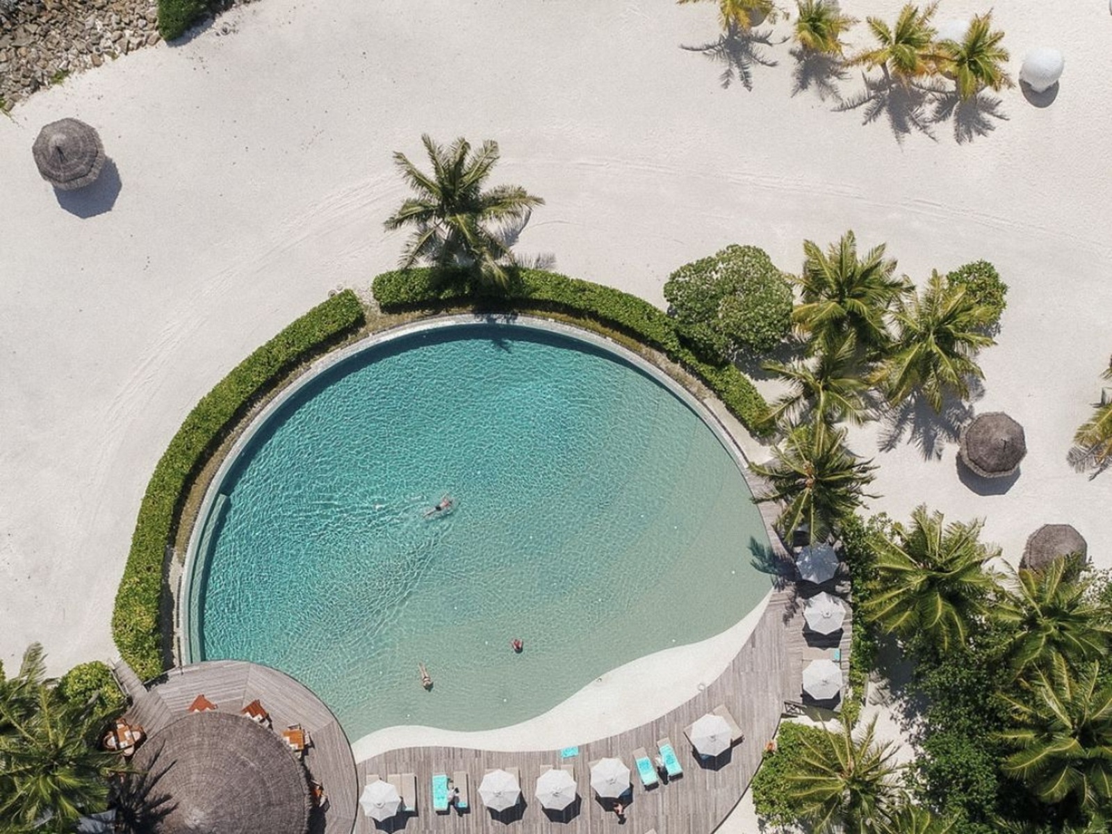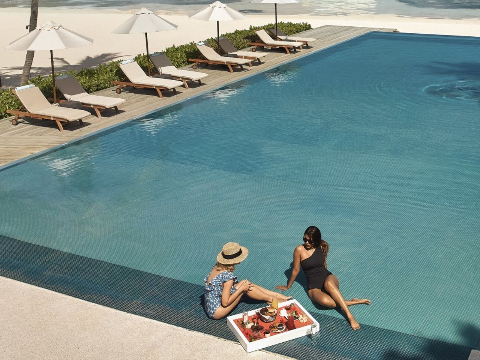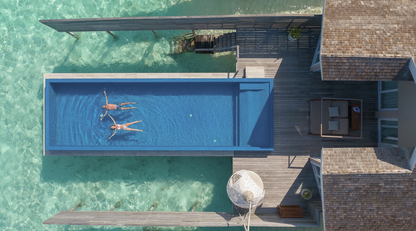 romantic water pool villas (110 m², pour les couples uniquement) avec salle de bain ouverte, terrasse spacieuse avec piscine à débordement privée et accès direct à la mer