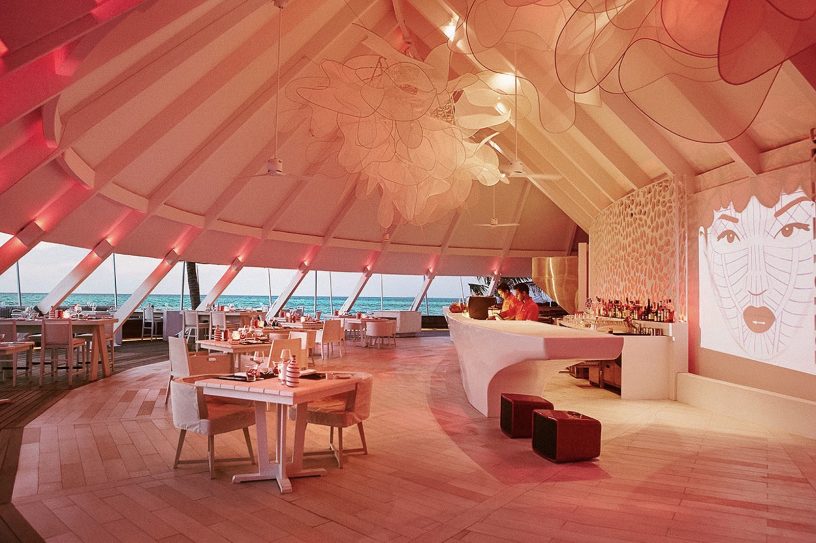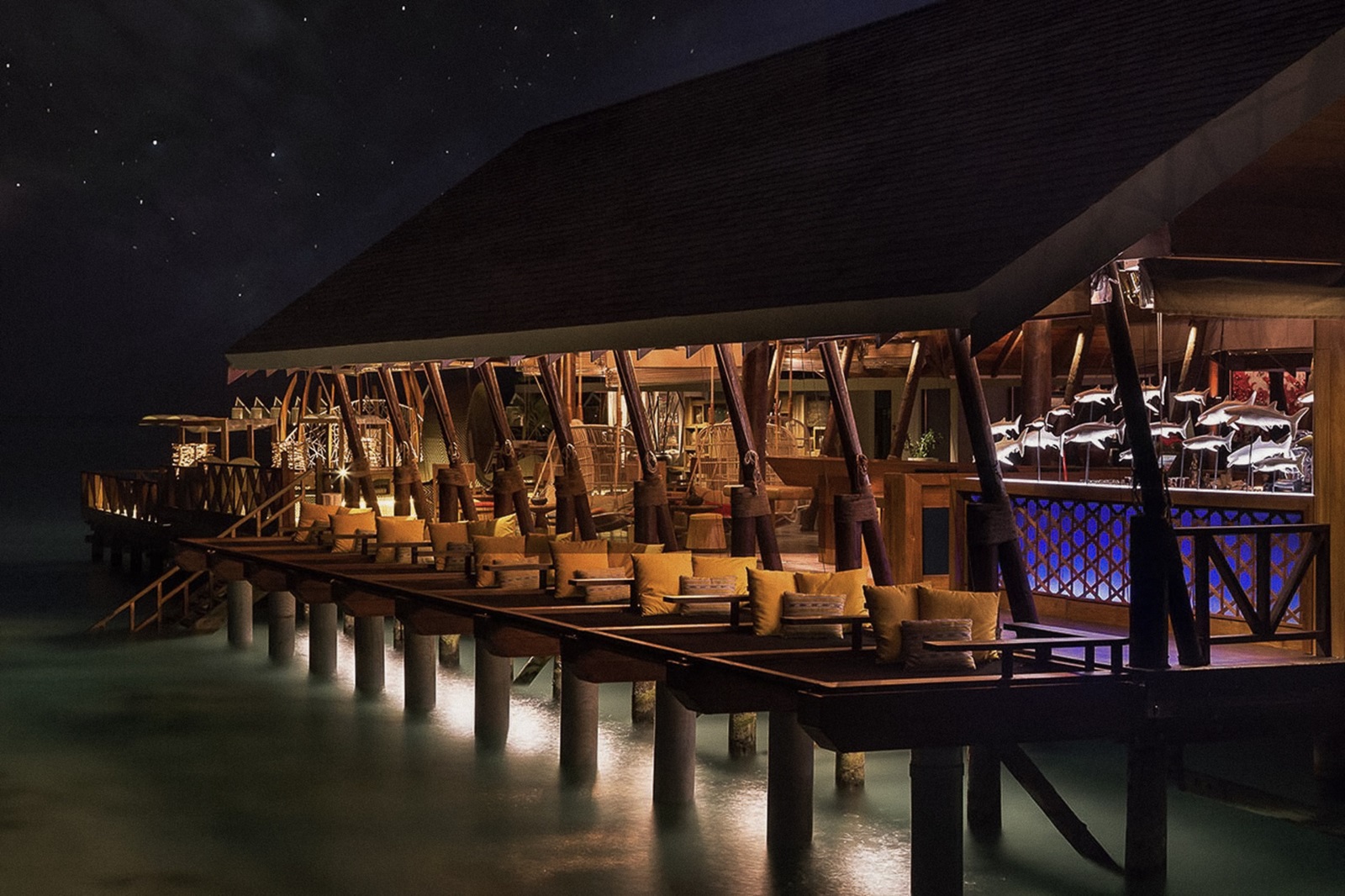 5 bars : ‘Senses Lounge Bar’, ‘East Bar’ sur pilotis, ‘Lagoon Bar’ à la plage (avec repas légers ; déjeuner), ‘Beach Rouge’ bar branché, ‘Veli’ poolbar (fruits de mer et poissons ; déjeuner).