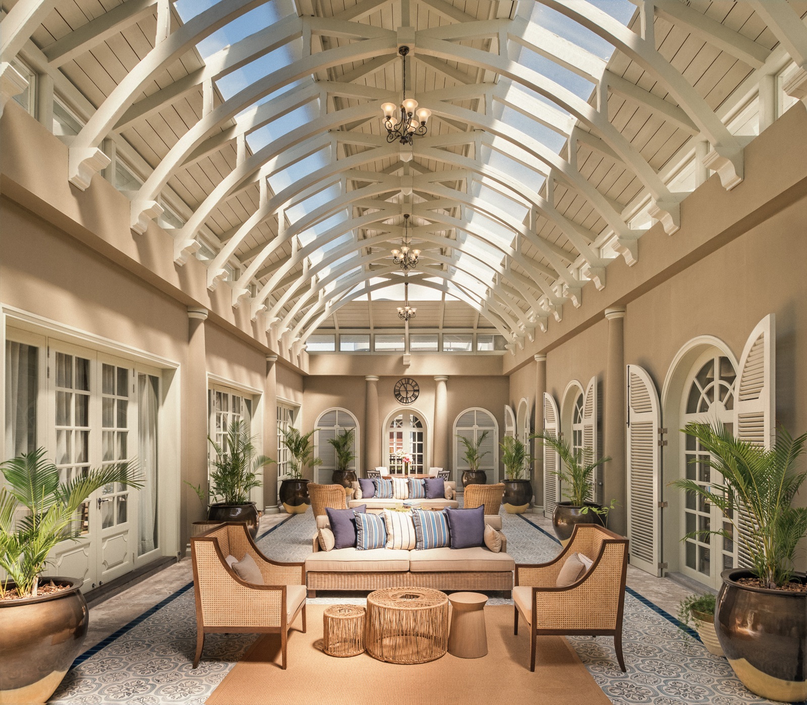 toutes les suites luxueuses de style colonial disposent d'un bain avec jets, douche, sèche-cheveux, TV à écran plat, base lecteur iPod®, wifi, téléphone, fer et planche à repasser, machine à café Illy®, divan-lit, minibar (€), coffre-fort airco, service de majordome, terrasse ou balcon