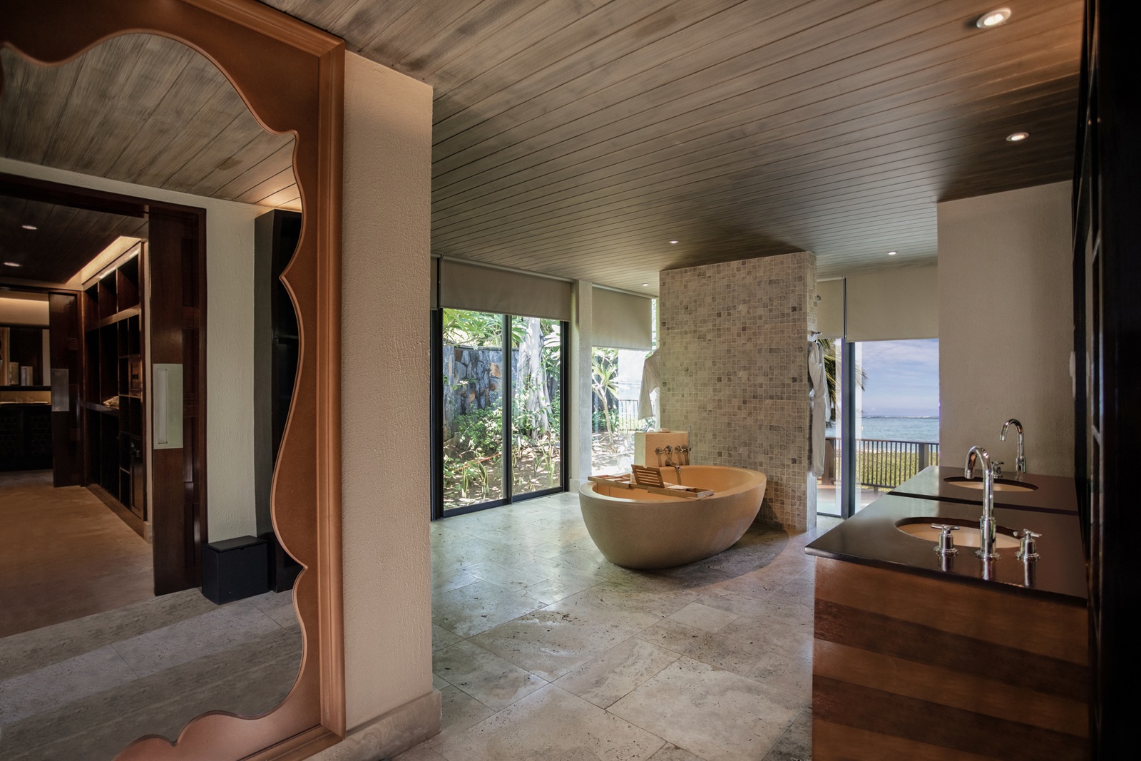 Peninsula Beach Access Suite (100 m²) (sur demande) située en bord de mer au rez-de-chaussée avec accès direct à la plage, salon spacieux, chambre à coucher avec lit king-size et vue mer