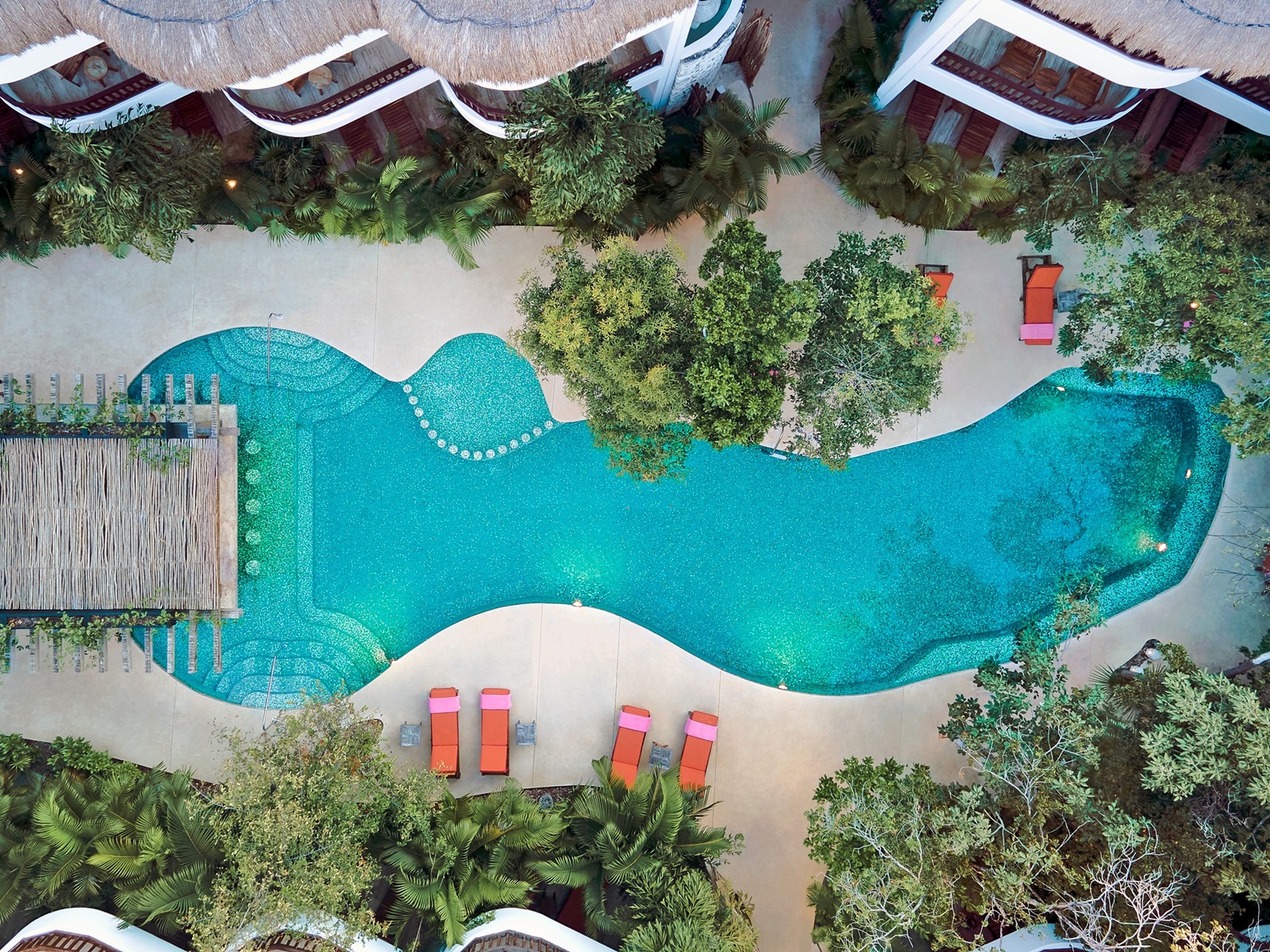 Tulum est une ville où l'histoire, la nature et la culture se conjuguent à merveille. Le Kimpton Aluna de style bohème reflète très bien ces qualités. Situé au milieu d'une oasis de verdure, ce petit hôtel de charme est le point de départ idéal pour une visite du site archéologique de la ville. De plus, c'est un endroit où la paix et la détente sont centrales. Les couleurs terre, les tapis de jute, les meubles en bois faits à la main et la pierre naturelle y donnent le ton. L'hôtel a une très belle énergie qui se reflète entre autres dans deux clubs de plage privés et un toit-terrasse avec une piscine et des performances de DJ.