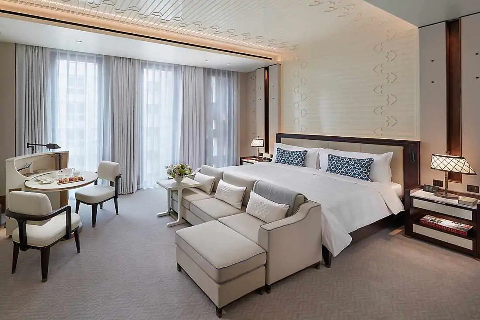 chambres Premier (60 m²) sont situées sur un coin et disposent d'un dressing, coin salon et balcon offrant une vue magnifique sur la ville