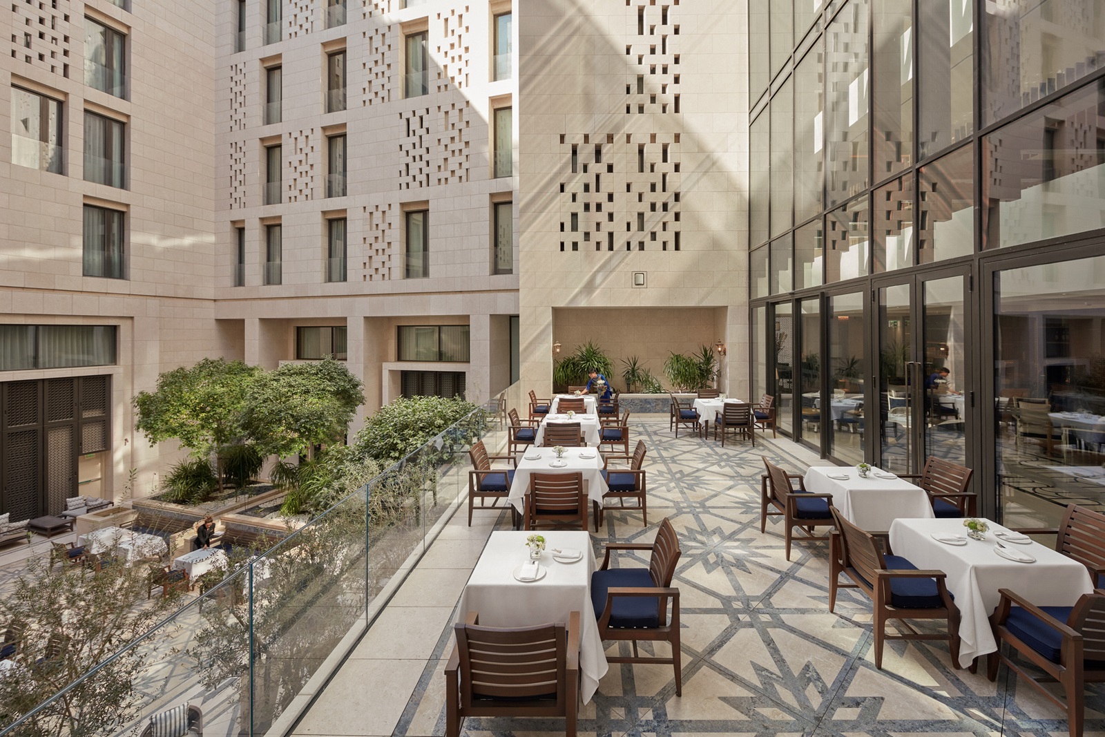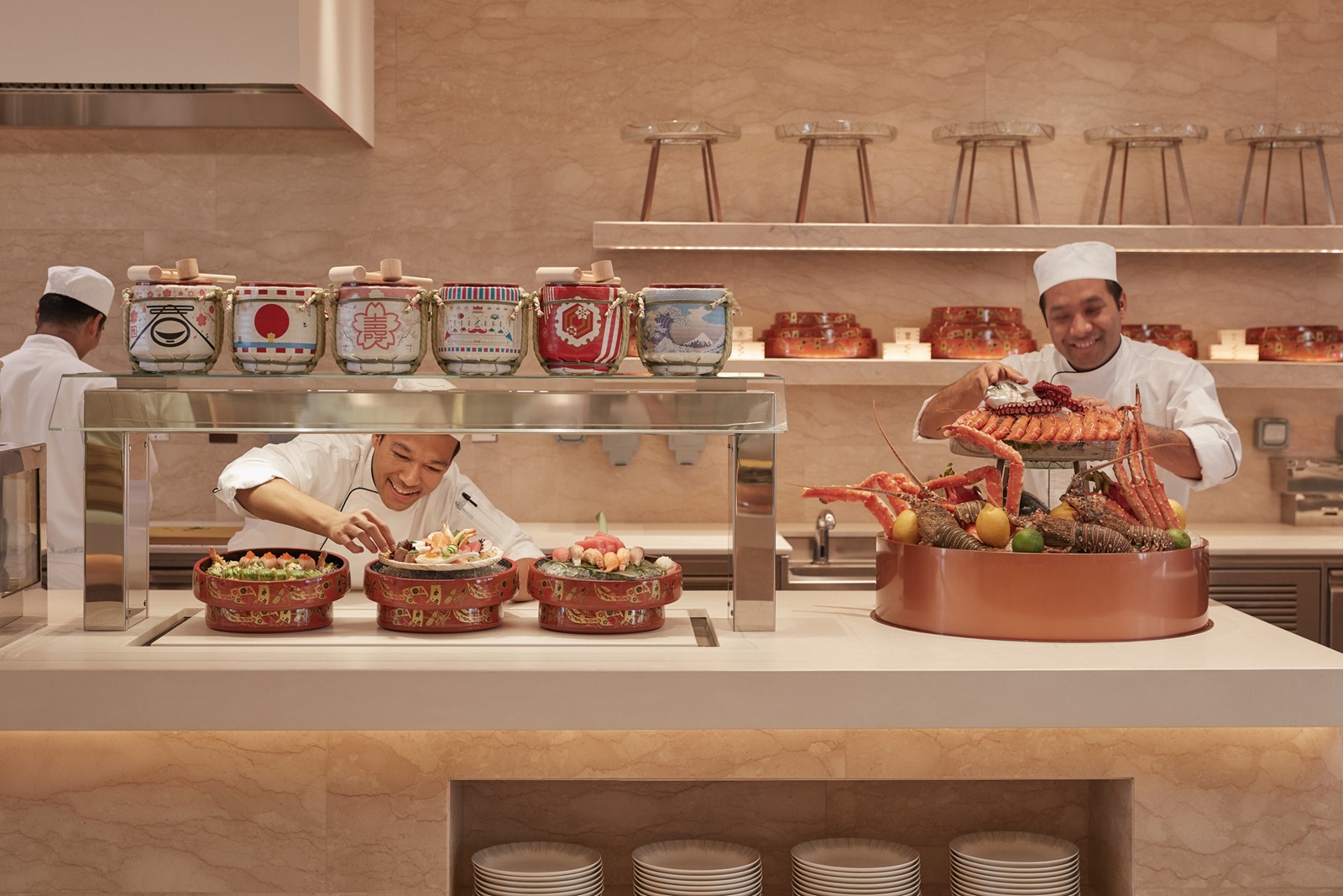 3 restaurants à la carte : ‘IZU’ (cuisine française et méditerranéenne contemporaine, déjeuner et dîner), ‘Mosaic’ (restaurant éclectique avec 9 cuisines ouvertes de destinations le long du Silk Road, déjeuner et dîner) et ‘Liang’ (cuisine cantonaise authentique, déjeuner et dîner)