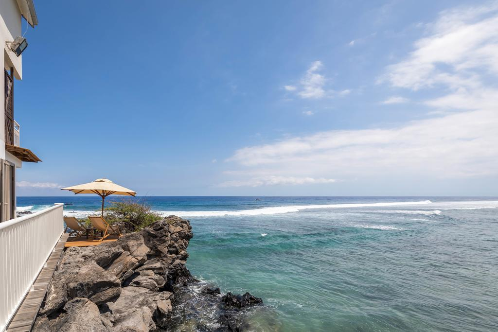 suite océan (53 m²) avec coin salon spacieux, coin dressing, douche extérieure, vue mer et accès direct à la petite crique aux pieds de l’hôtel