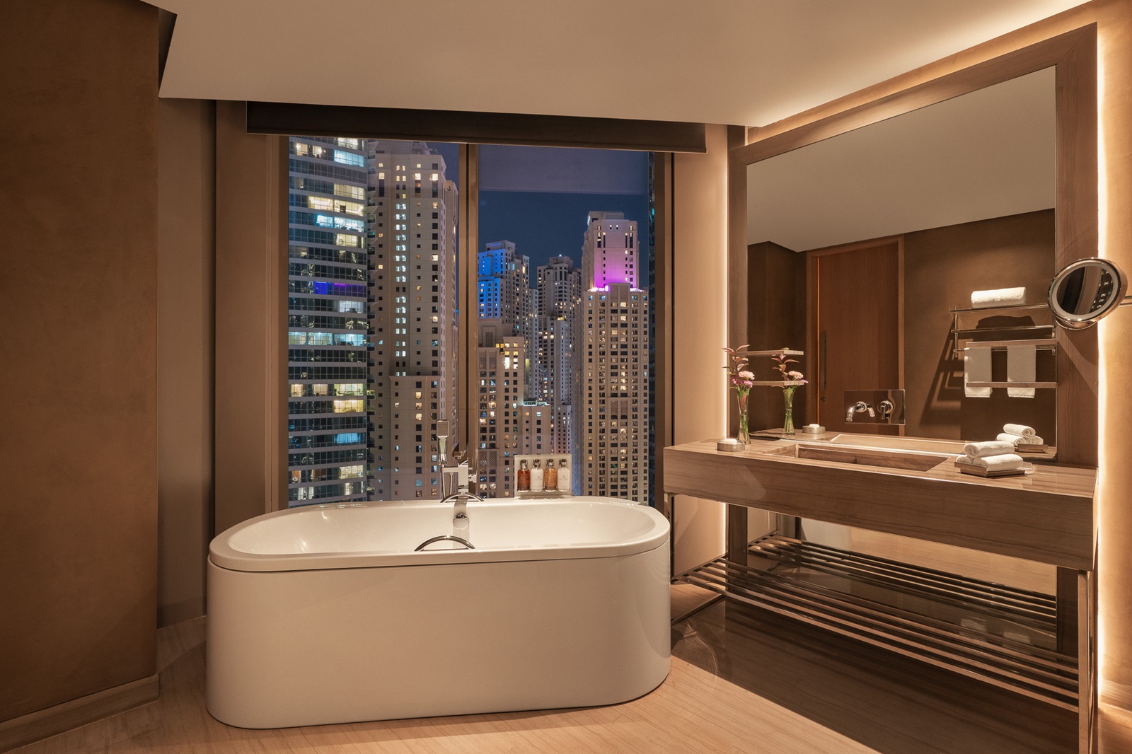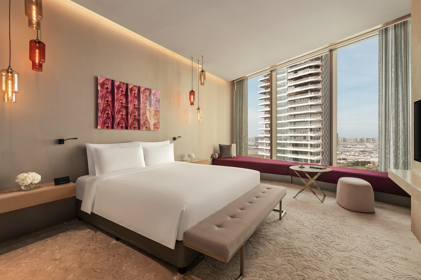 Chambres Premium (37-48 m²) avec lit king-size ou lits jumeaux et vue spectaculaire sur le golfe Arabique et Ain Dubaï.