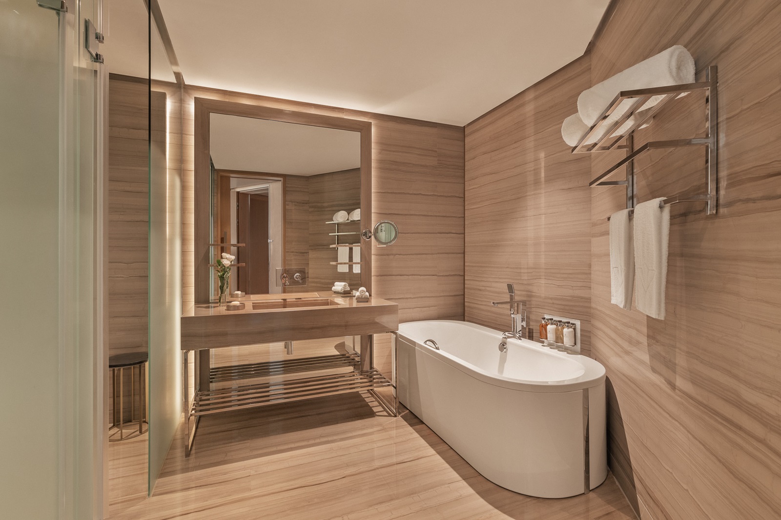 Toutes les chambres modernes, colorées et très élégantes disposent de fenêtres panoramiques et d'une salle de bains (baignoire et douche séparée, articles de toilette de luxe), peignoir et pantoufles, sèche-cheveux, climatisation, wifi, machine Nespresso® (2 capsules de café gratuites par jour), TV à écran plat, coffre-fort, téléphone et minibar (€)