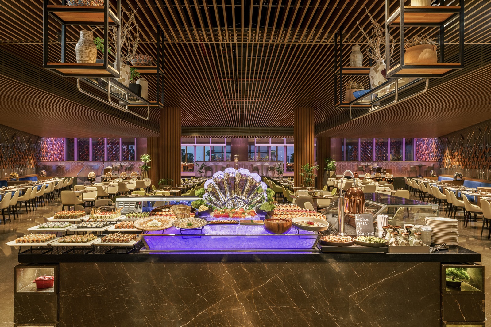 6 restaurants à la carte: STK Restaurant (steakhouse), Luigia Ristorante (italien), Ammos Greek (grec authentique), Asil (turc, marocain et libanais) et Azure Beach Restaurant & Bar (avec snacks et cuisine asiatique), Godiva Café (avec les dernières créations de chocolat belge
