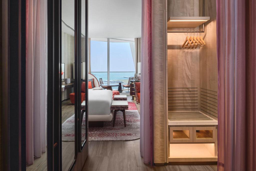Bienvenue au tout nouvel hôtel W de Dubaï ! Cet hôtel unique de 31 étages offre une vue fantastique sur le nouveau Dubai Harbour et The Palm. La décoration du lobby, des restaurants et des chambres est étonnante et très innovante, avec un souci du détail et un mélange de design arabe contemporain et moderne. Ces points forts sont sans aucun doute le restaurant rooftop japonais 'Attiko', avec sa belle terrasse et l’atmosphère vivante dans l’hôtel. Il fait partie du complexe 'Mina Seyahi', où vous pouvez également utiliser toutes les facilités des hôtels jumeaux Westin et Le Meridien Mina Seyahi, qui sont reliés par de magnifiques jardins.