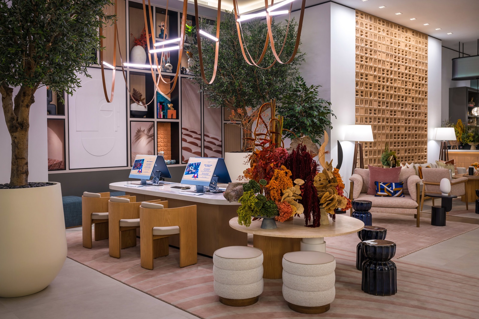 lobby contemporain avec bar (e.a. cafés, repas légers) et vue sur la marina