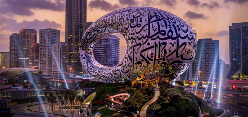 Au cœur de Dubaï, non loin du Burj Khalifa, se trouve le Musée du Futur. Chef-d'œuvre architectural, il offre un regard futuriste sur la technologie et l'innovation. Le musée fait office de plaque tournante pour les idées et les innovations avant-gardistes dans des domaines tels que la santé, l'éducation, le développement durable et plus encore. Le National Geographic l’a élu dernièrment parmi les plus beaux édifices du monde.