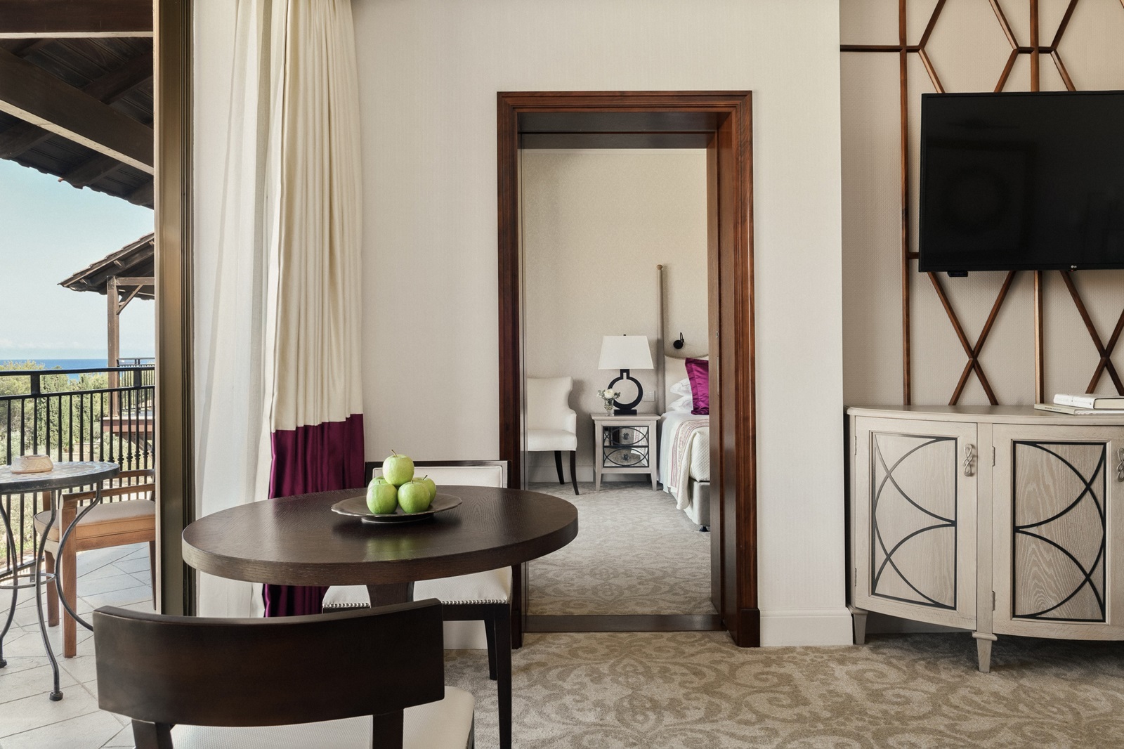 suites junior Artemis (66 m²) (16+) situées au 3ème étage avec séjour/chambre à coucher spacieux et vue mer