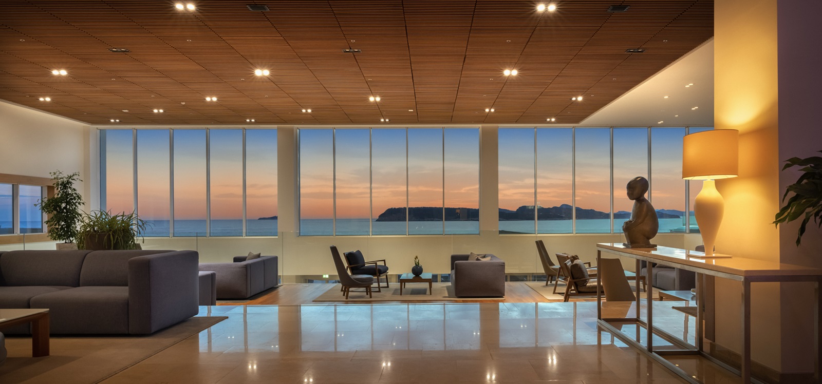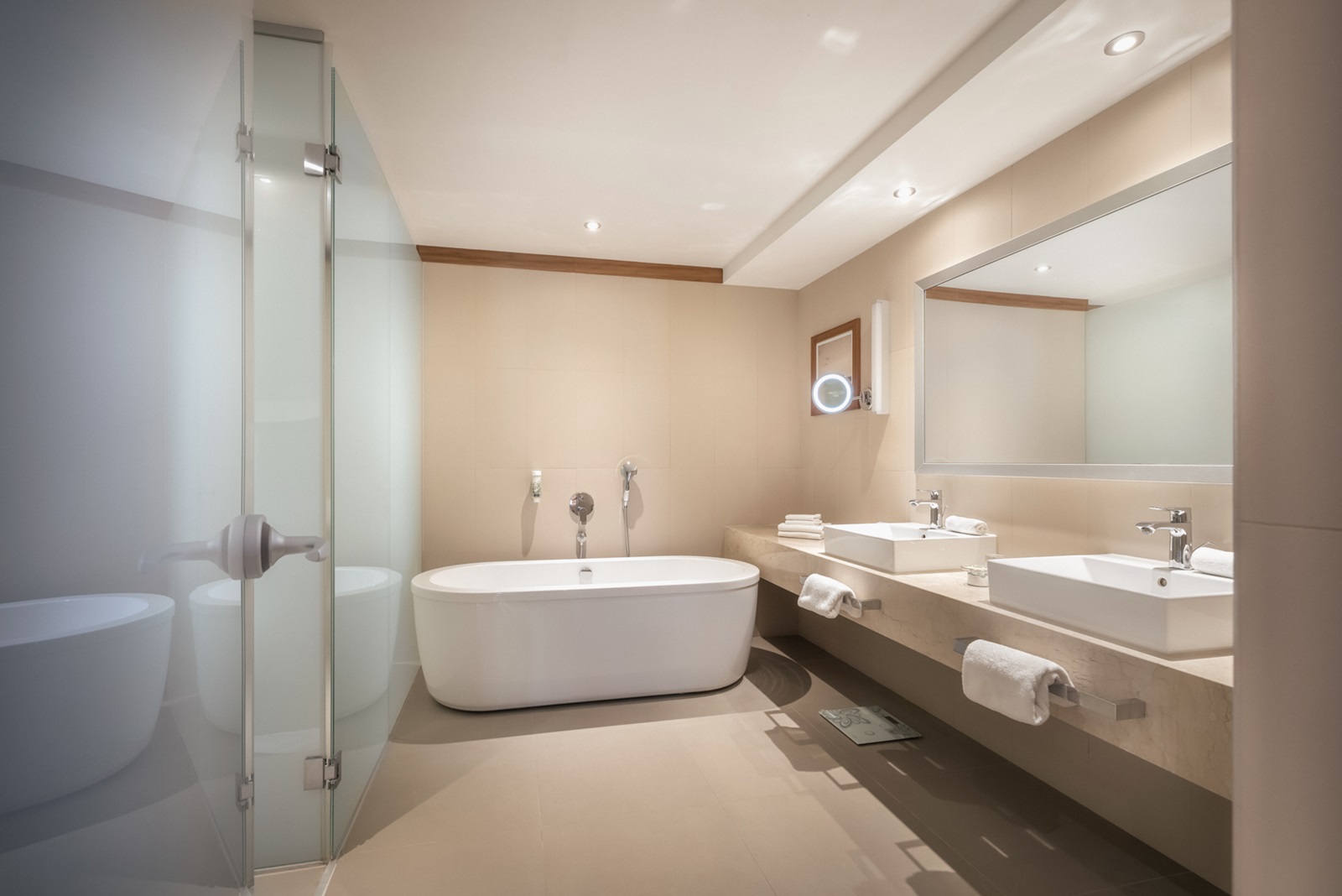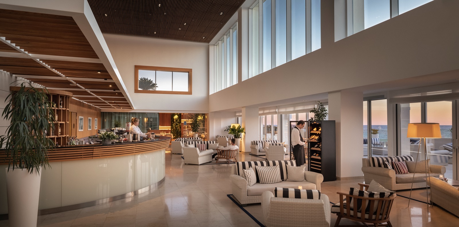chambres V-level (35 m²) avec vue mer et privilèges supplémentaires : e.a. check-in et check-out personnalisés, service de conciergerie, expérience gastronomique haut de gamme (dîner au restaurant Momenti et Dine Around : 1 dîner par séjour au restaurant La Mar ou dîner 3 plats au restaurant Olivia, sur réservation et selon disponibilité)