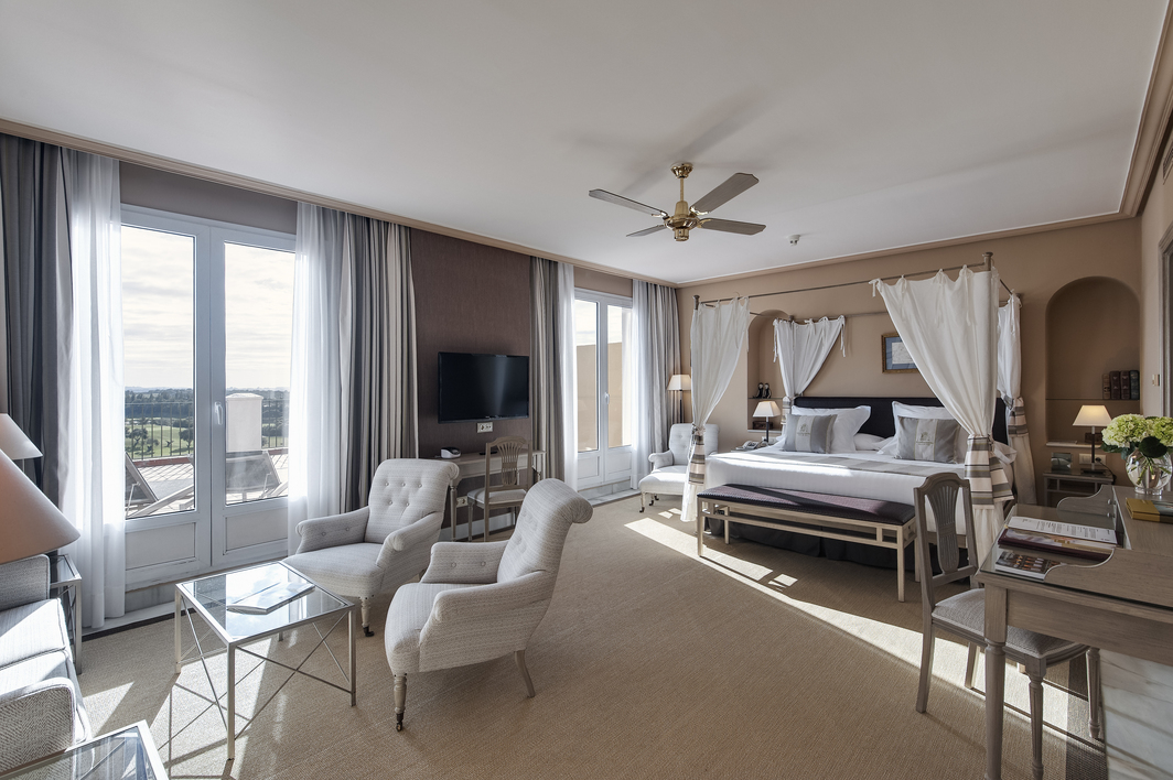Le Barceló Montecastillo Golf & Sports Resort ***** est un hôtel spectaculaire, récemment rénové, avec un cadre naturel fantastique et un château du 19ème siècle à la périphérie de Jerez de la Frontera. Ce complexe bénéficie d'un emplacement privilégié à côté du célèbre circuit automobile, à une demi-heure de la plage et à seulement 10 minutes de l'aéroport de la ville. Les 124 grandes chambres présentent un design moderne tout en conservant le style classique et élégant qui caractérise l'hôtel. Les chambres sont équipées de tout le confort d'un hôtel 5 étoiles. Il propose également 38 belles villas. Les excellentes installations sportives de l'hôtel comprennent un parcours de golf de 18 trous conçu par Jack Nicklaus et un practice. Il dispose également de courts de tennis et de 3 terrains de football de taille standard. L'innovant U-Spa dispose de saunas, d'un bain à remous, de salles de massage et d'une salle de fitness, ainsi que d'incroyables traitements spécifiques pour chaque sport et de soins de beauté exclusifs.