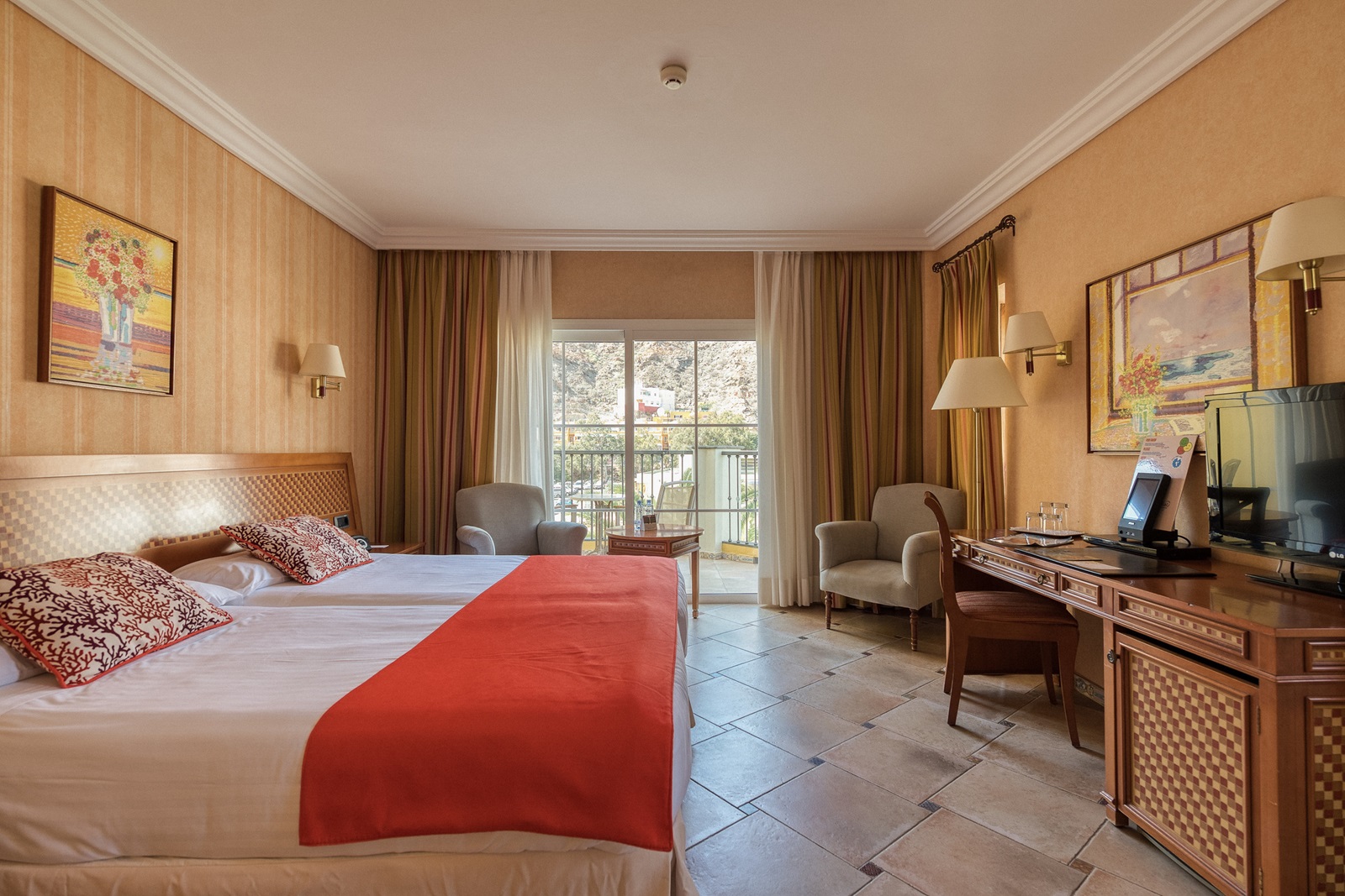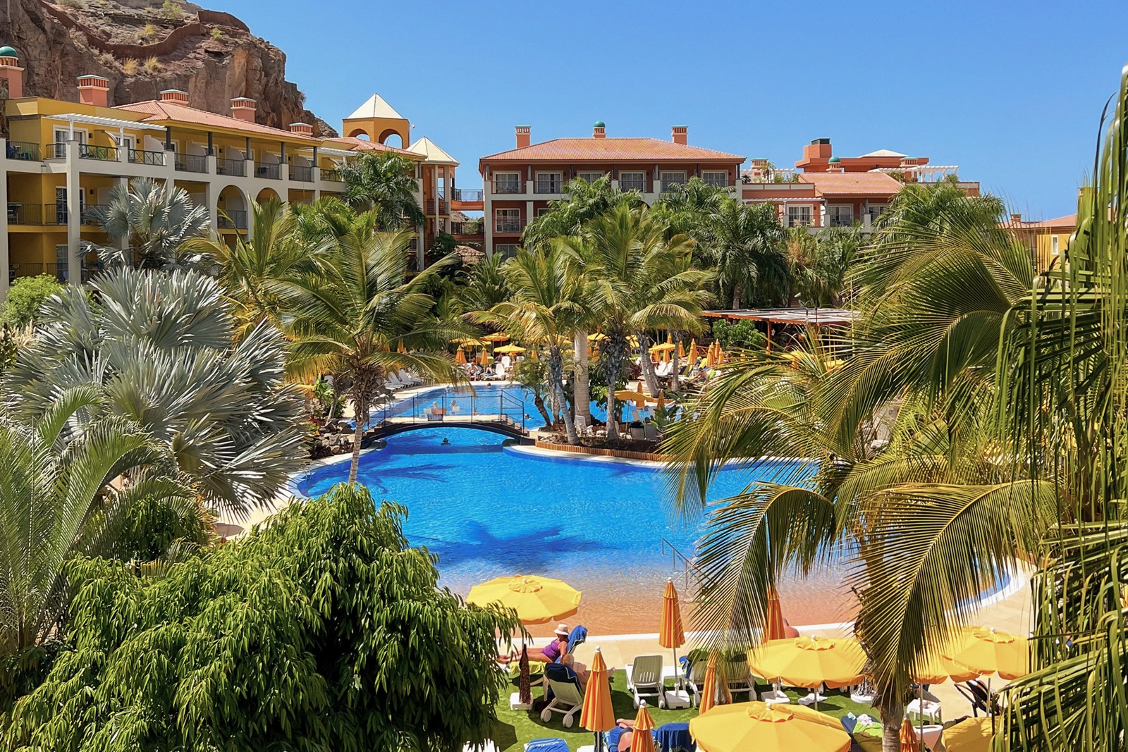 Au pied des montagnes, dans un endroit splendide près du petit port de Mogán, séjournez dans un cadre canarien avec patios, ponts en bois et cascades au Cordial Mogán Playa à Puerto de Mogan. La fierté de ce complexe luxueux est le jardin luxuriant avec des fleurs et des plantes tropicales entourant une piscine d'un bleu éclatant. L'après-midi, vous pourrez déjeuner sous un soleil radieux et une brise légère.