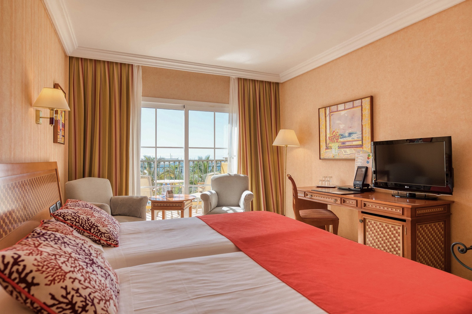 chambres standard (37 m2) avec bain/douche, sèche-cheveux, téléphone, TV-satellite, wifi, minibar (€), coffre-fort à louer, carrelage, climatisation ou chauffage (selon la météo), balcon ou terrasse
