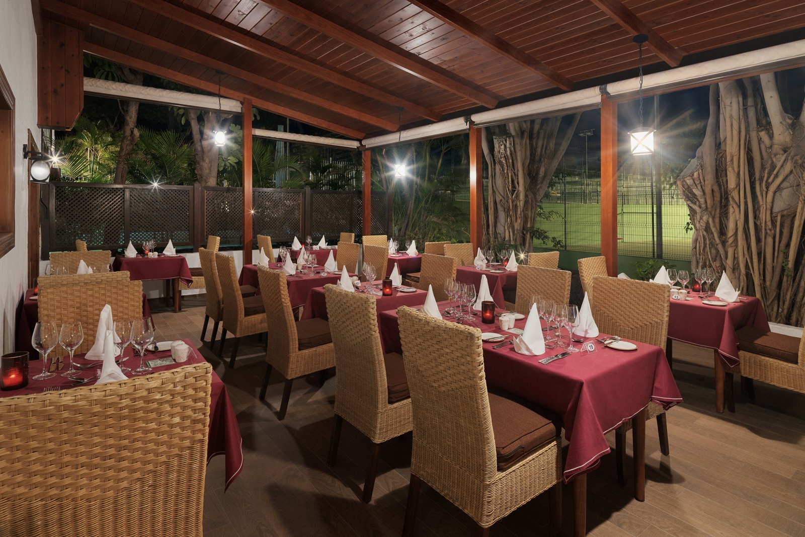 2 restaurants à la carte au beachclub ‘Club Laurel' : ‘La Trattoria’ (pizzas et pâtes, déjeuner et dîner) et ‘El Laurel’ (menu dégustation, dîner)