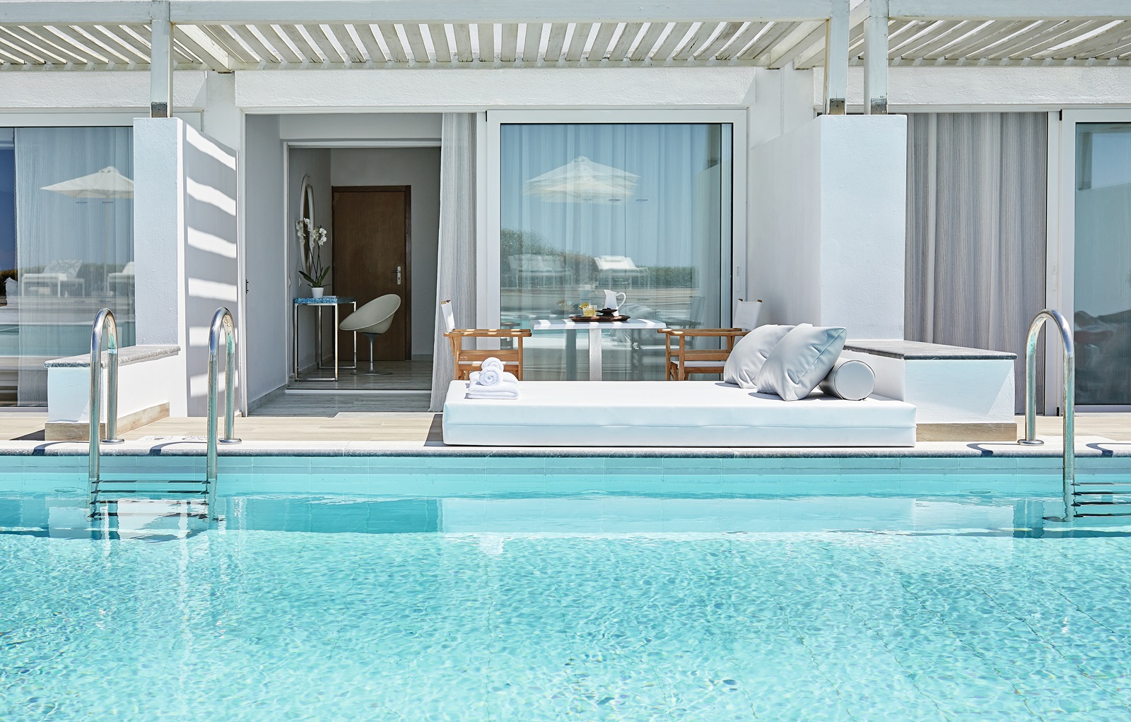 chambre White swim up (27 m²) avec bain, terrasse, accès direct à la piscine commune