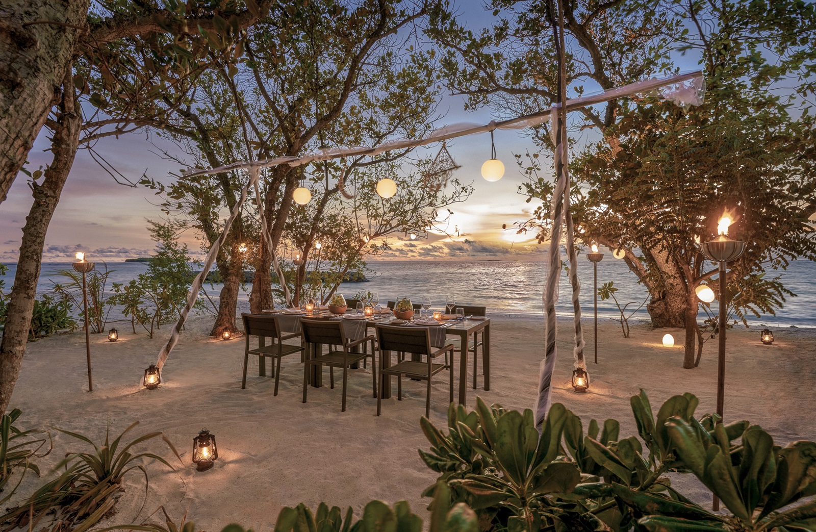 expériences gastronomiques privées telles que déjeuner/dîner à The Shack (banc de sable), petit-déjeuner flottant, dîners romantiques sur la plage, dîners à thème, ateliers de cuisine