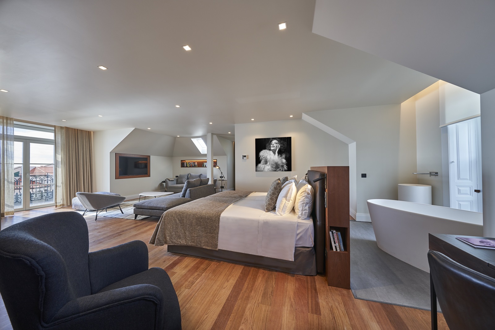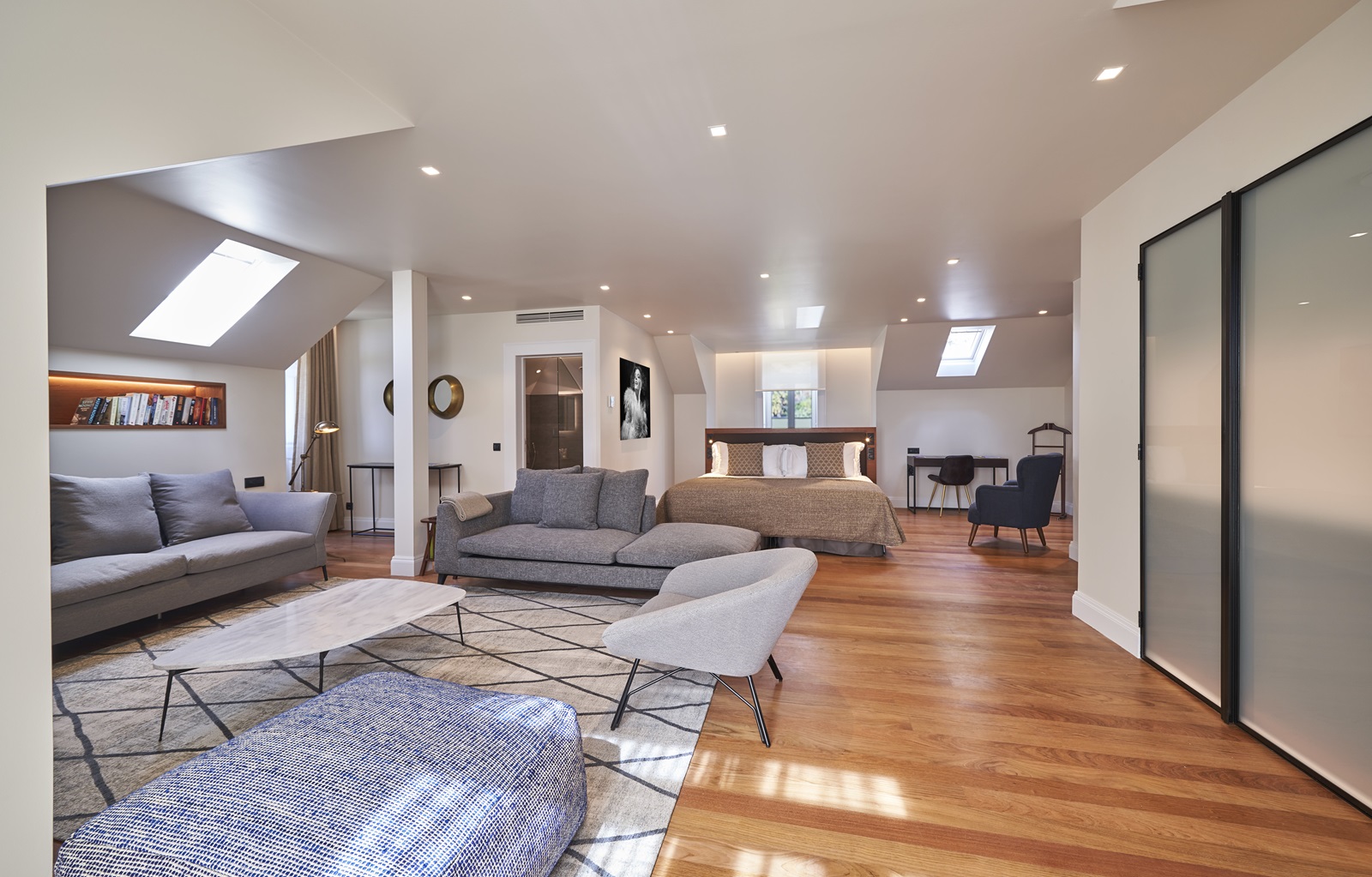 toutes les suites spacieuses disposent d'une belle salle de bain moderne (baignoire et douche séparée, produits Bvlgari, sèche-cheveux), dressing, wifi (gratuit), téléphone, télévision à écran plat, minibar (eau et boissons non alcoolisées gratuites), coffre-fort, machine Nespresso, combinaison de parquet et de moquette, chambre à coucher et salon séparés, climatisation et balcon ou terrasse