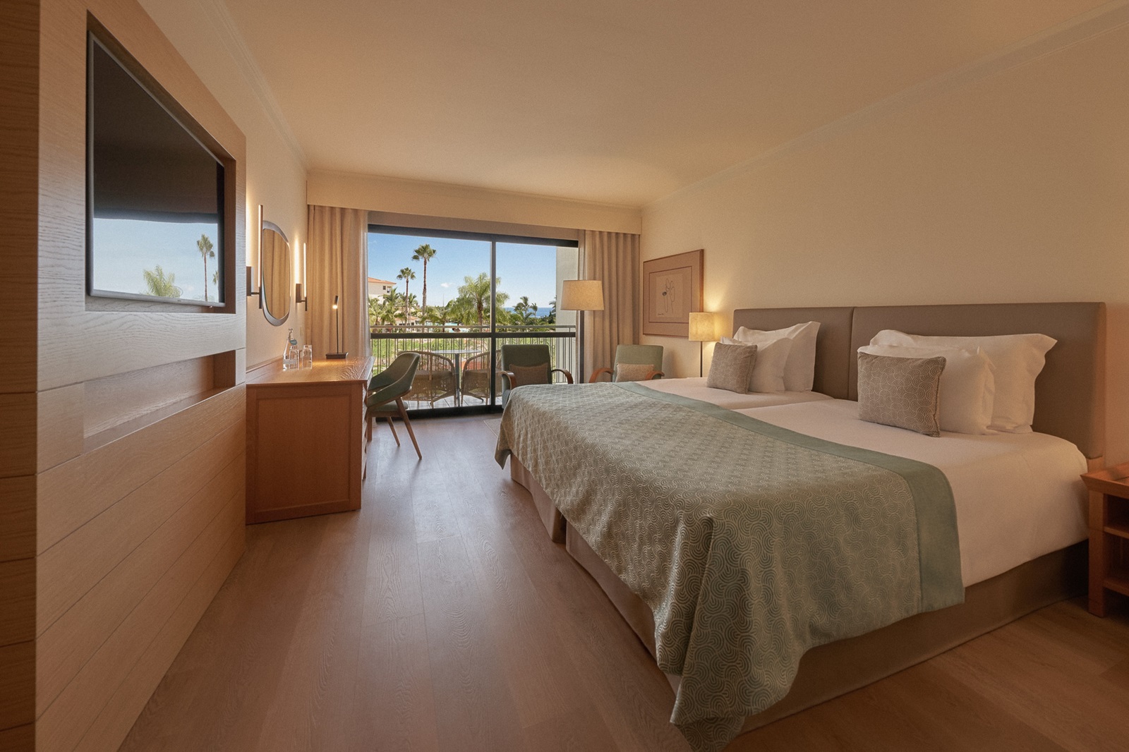 Ayant pénétré dans le hall de réception en marbre, vous vous dirigez vers la terrasse panoramique et découvrez tout de suite le concept des lieux : élégance, espace et vue omniprésente sur l’océan Atlantique. Vous trouverez toujours un petit coin tranquille où oublier complètement l’agitation de votre vie quotidienne. Les bâtiments sont adjacents à la piscine, elle-même entourée de solariums, au beau milieu d’une végétation africaine exotique avec un jardin de luxe de 13.000 m² et plus de 500 espèces de fleurs différentes.. Les 198 chambres sont aménagées dans un style contemporain classique, avec des teintes douces et du bois de pin clair. L'hôtel fait partie de PortoBay Hotels & Resorts.
