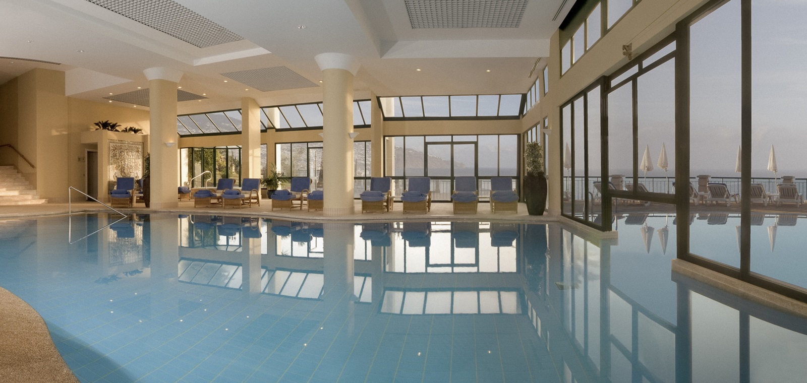 belle piscine intérieure chauffée avec espace extérieur spacieux
