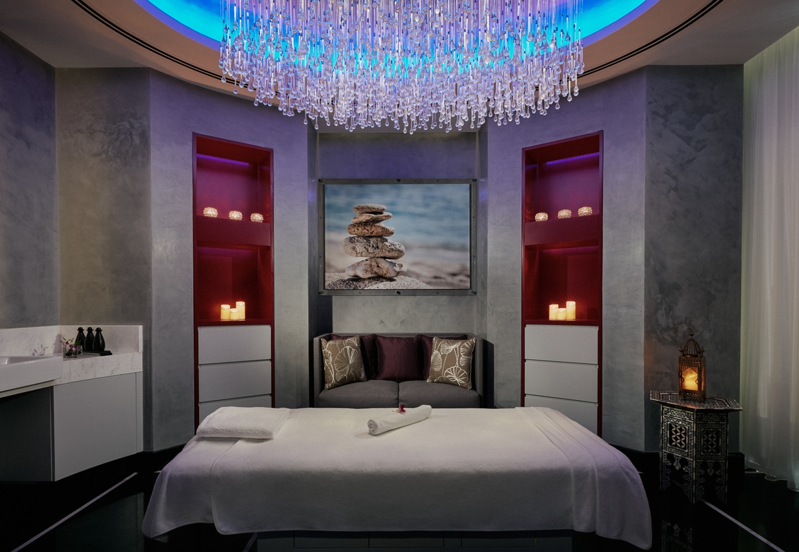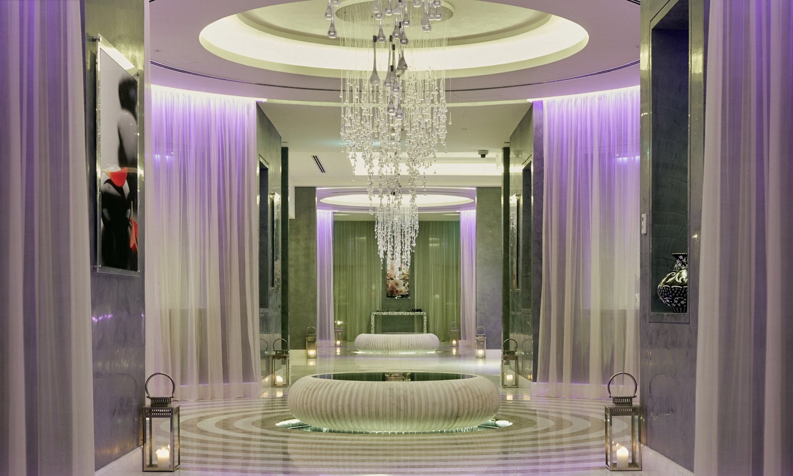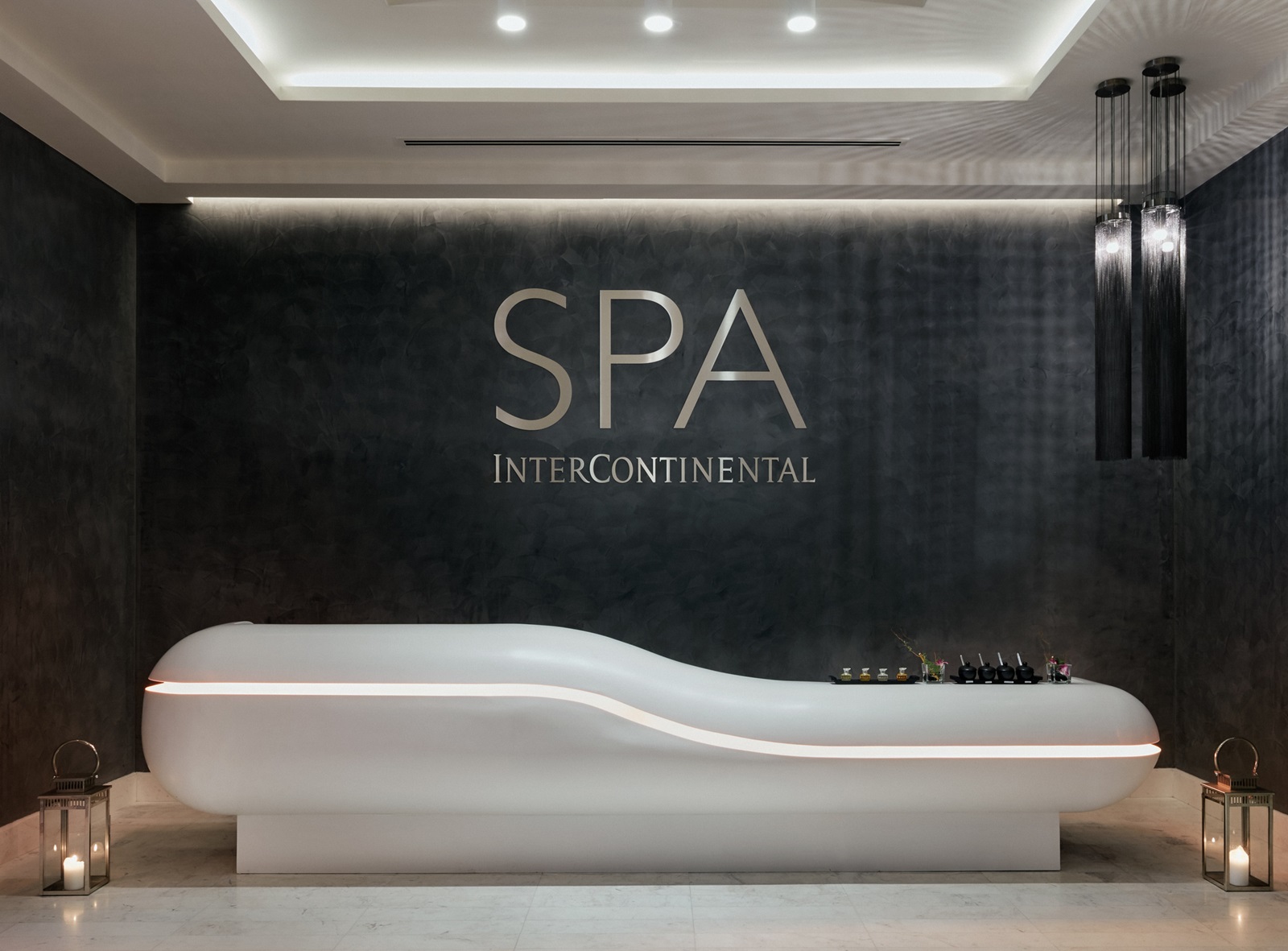 ‘Spa Intercontinental’ : tea lounge, piscine intérieure (réservée aux dames), sauna, bain de vapeur, massages (également avec lit de quartz) et soins de beauté