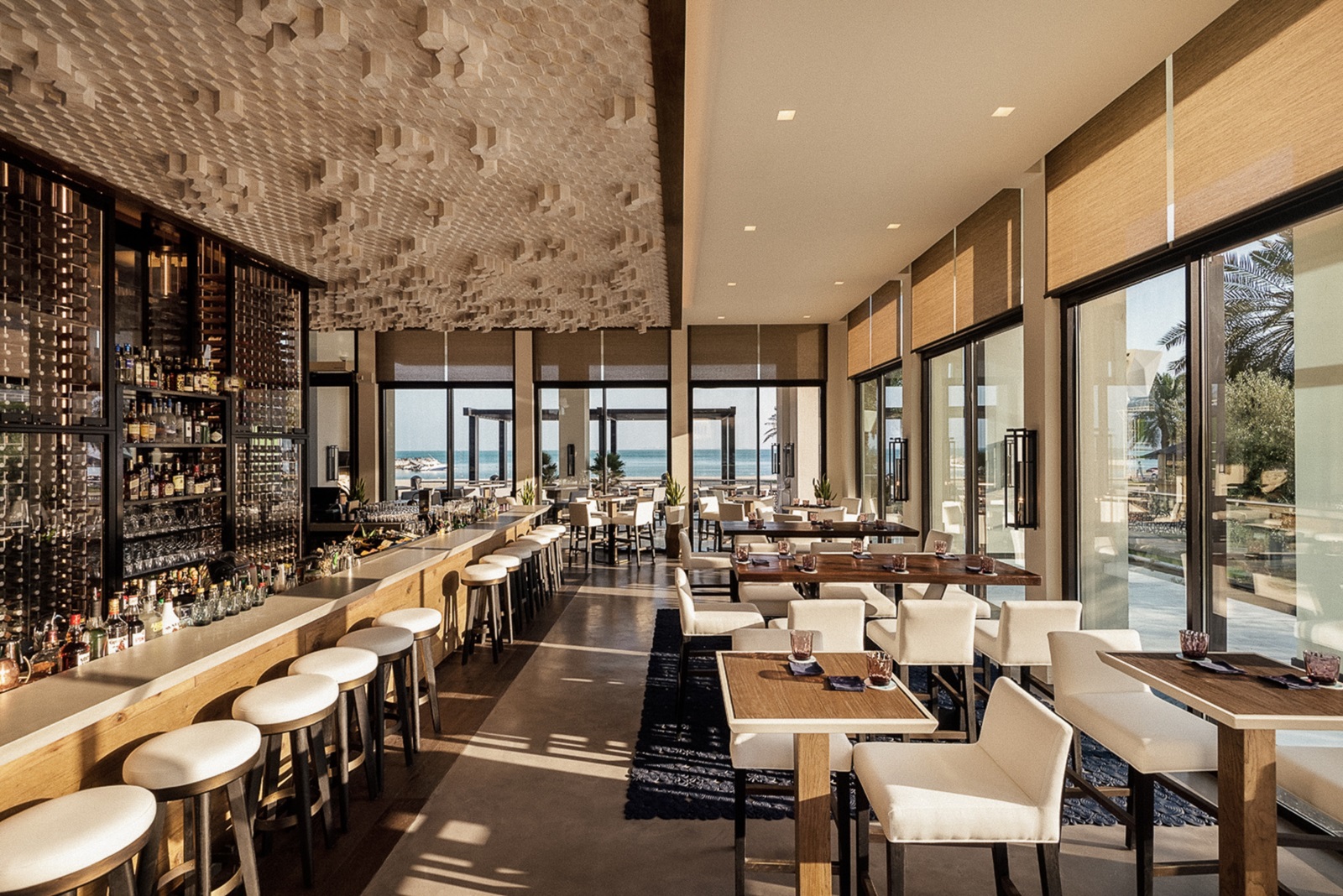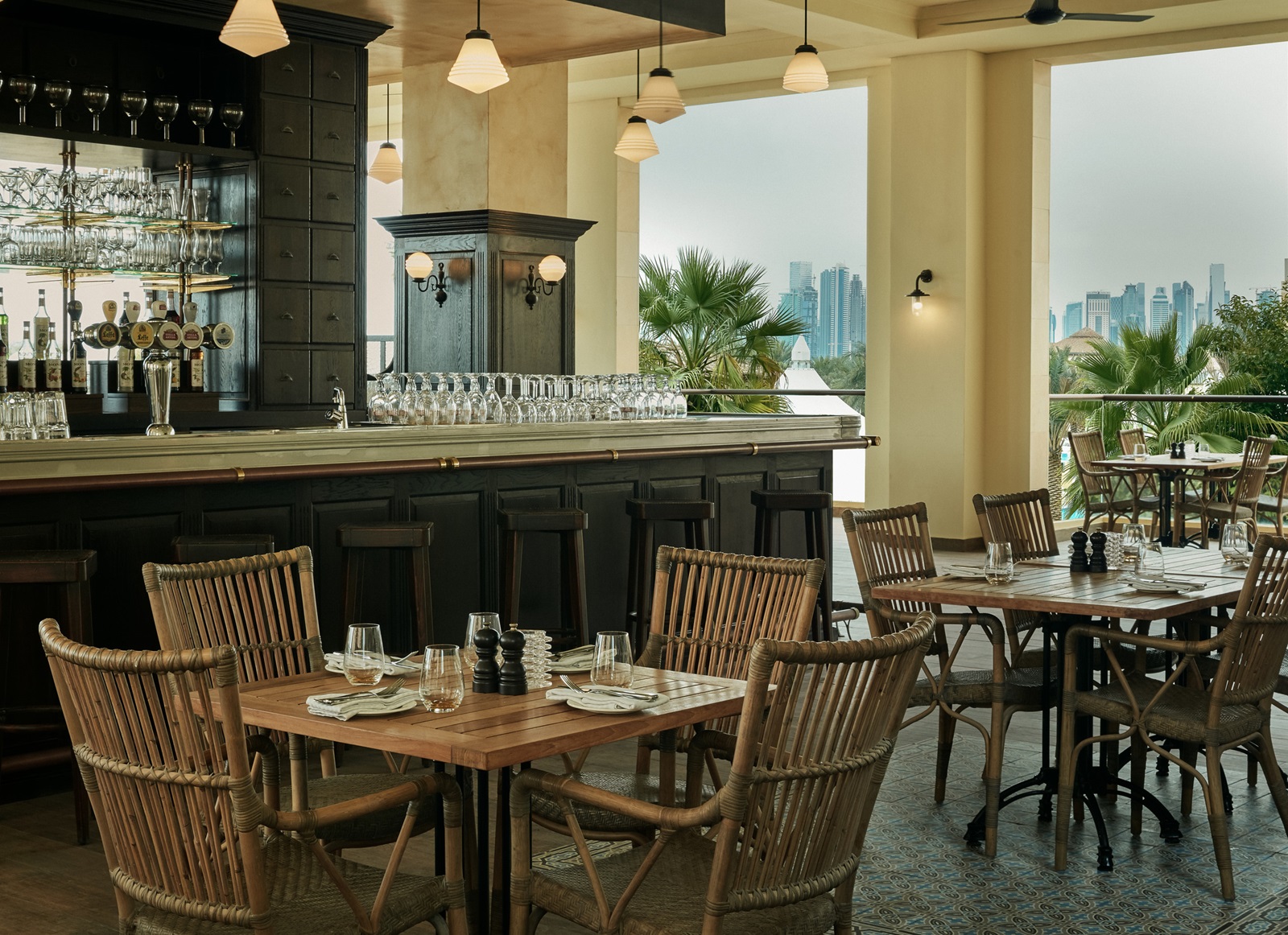 4 restaurants à la carte : ‘Novecento’ avec restaurant, lounge et terrasse (cuisine française et italienne, déjeuner et dîner), le restaurant exclusif ‘La Mar Doha by Gaston Acurio’ (cuisine péruvienne contemporaine et les meilleurs cocktails comme le classique Pisco Sour, dîner, également déjeuner le vendredi et le samedi), ‘Mykonos’ (l'un des meilleurs restaurants grecs et méditerranéens de Doha, déjeuner et dîner), le ‘Belgian Café’ (avec des spécialités belges comme les moules et de nombreuses bières belges, déjeuner et dîner)