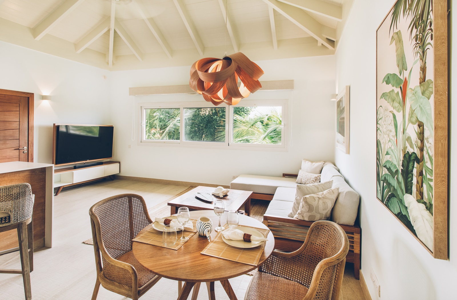 duplex suites private pool Pool (82 m²) (sur demande) situées près de la plage avec kitchenette, salon/salle à manger, chambre à coucher séparée et terrasse avec piscine privée