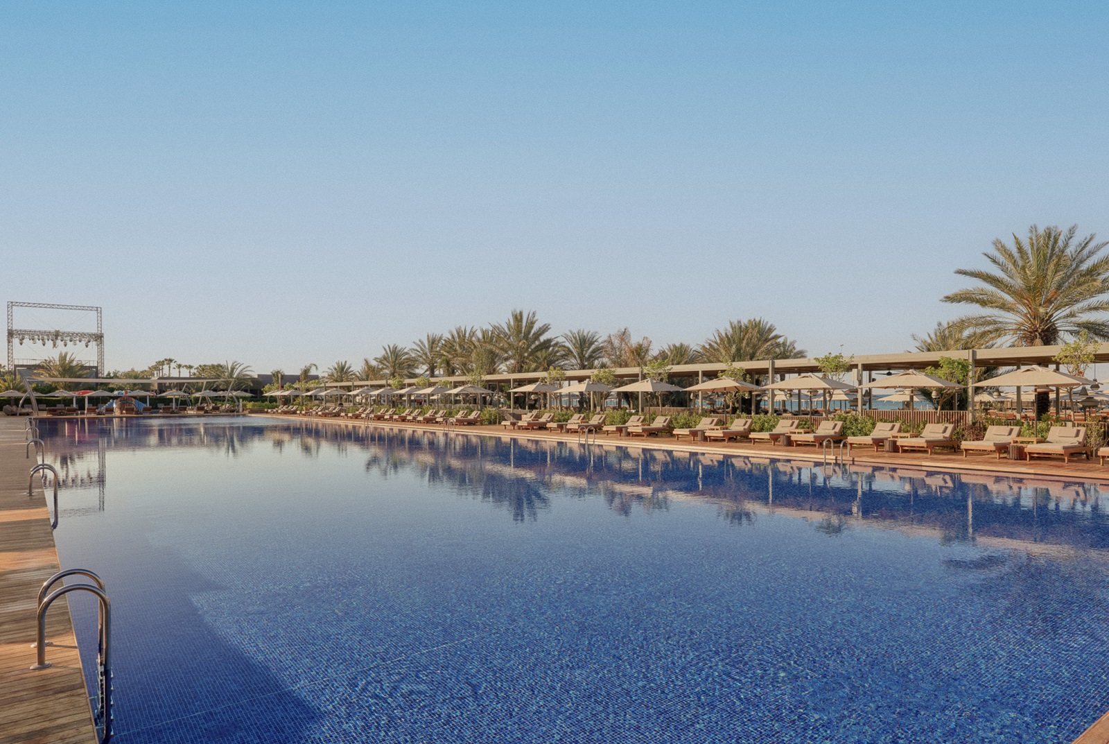 chaises longues, parasols et serviettes à la piscine et à la plage