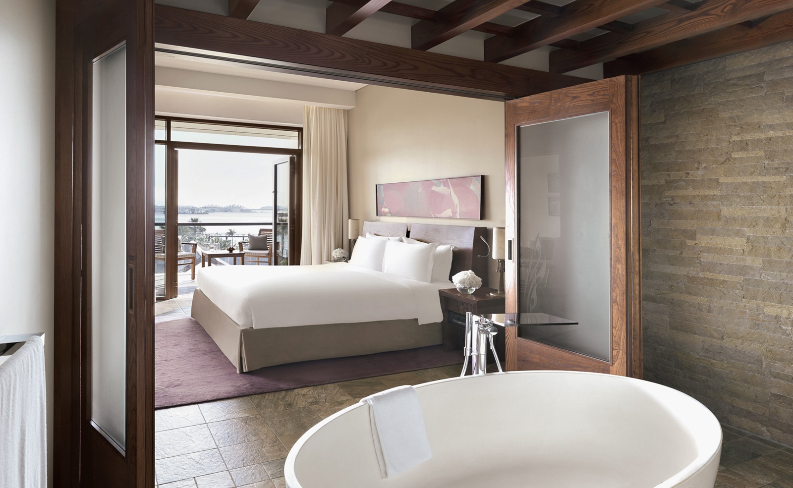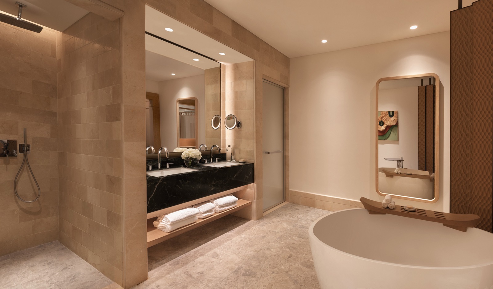 juniorsuites (60 m²) met zithoek, aparte slaapkamer, ruimere badkamer met alleenstaand bad en toegang tot de Premier Lounge